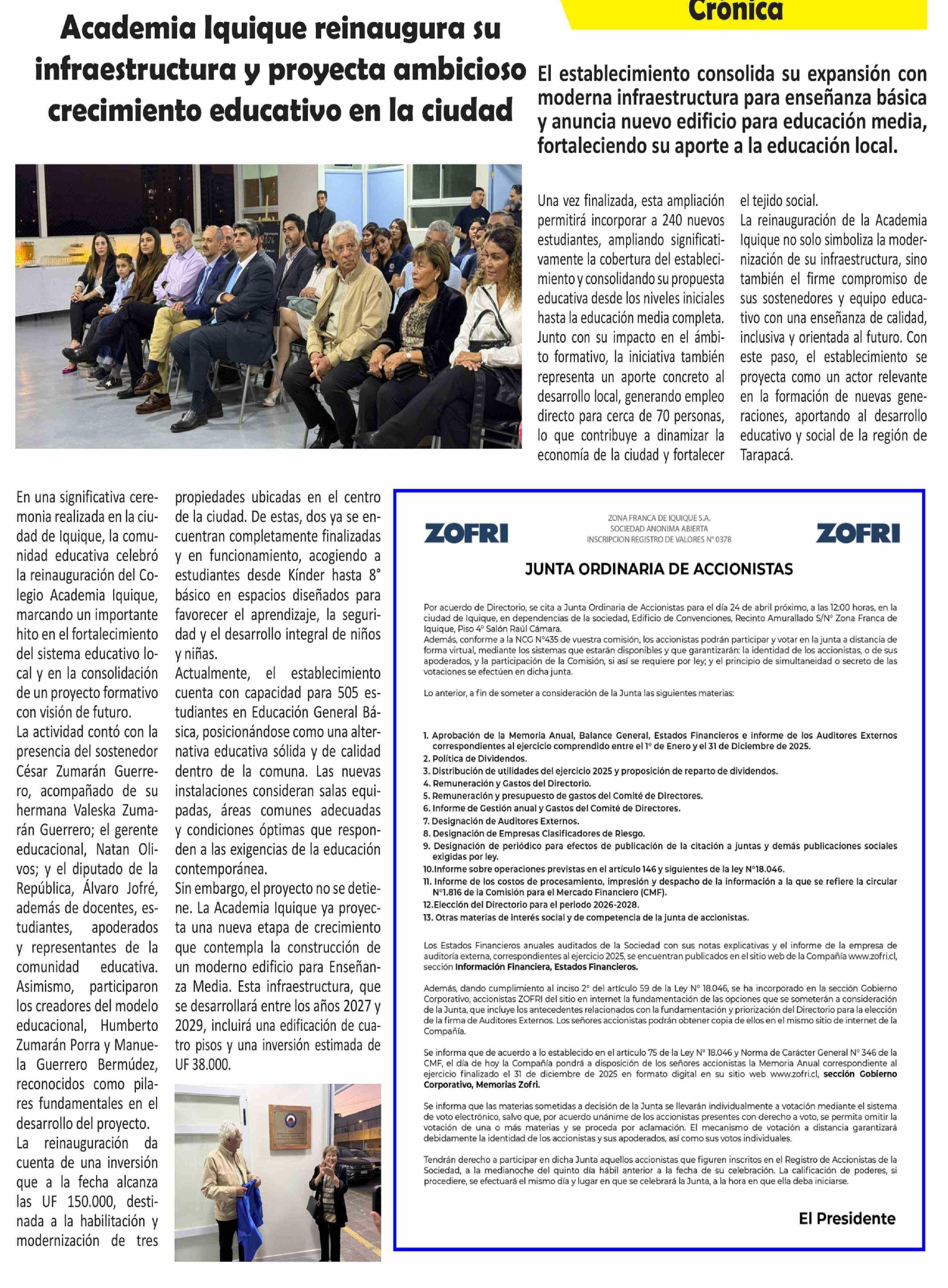 | Título: | Academia Iquique reinaugura su infraestructura y proyecta ambicioso crecimiento educativo en la ciudad |