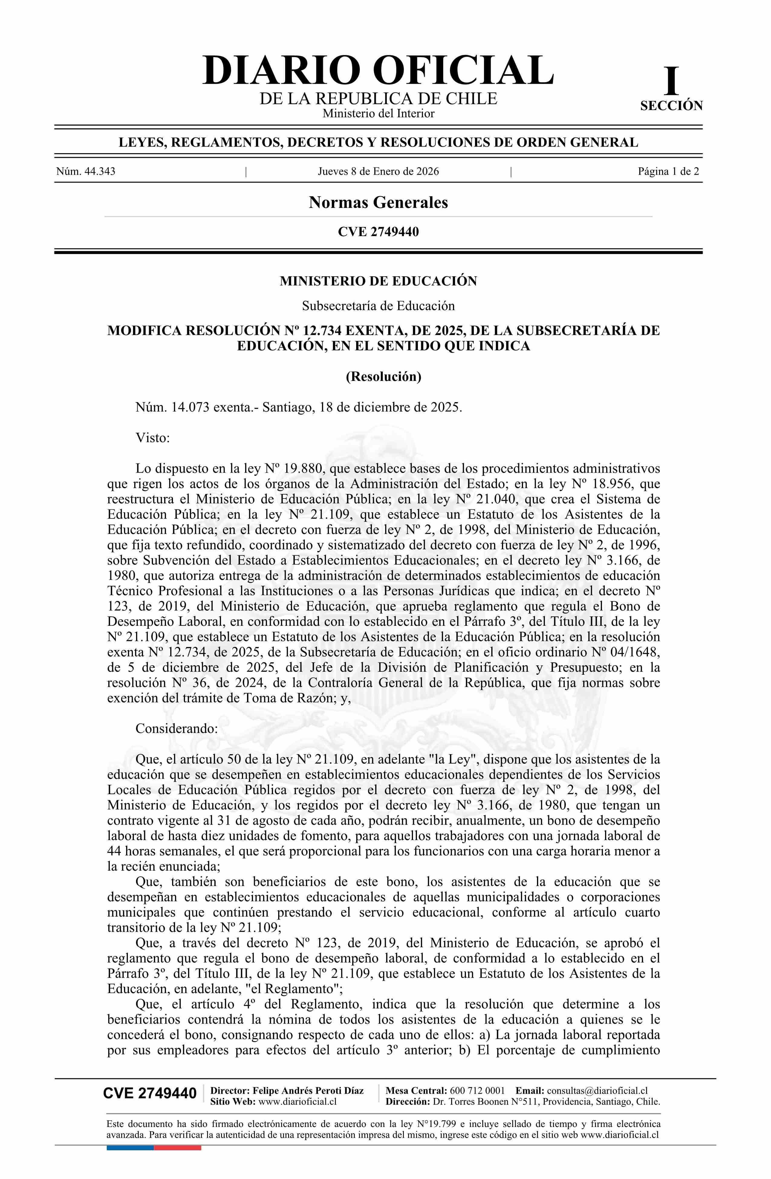 Título: Resolución exenta número 14.073, de 2025.- Modifica resolución Nº 12.734 exenta, de 2025, en el sentido que indica