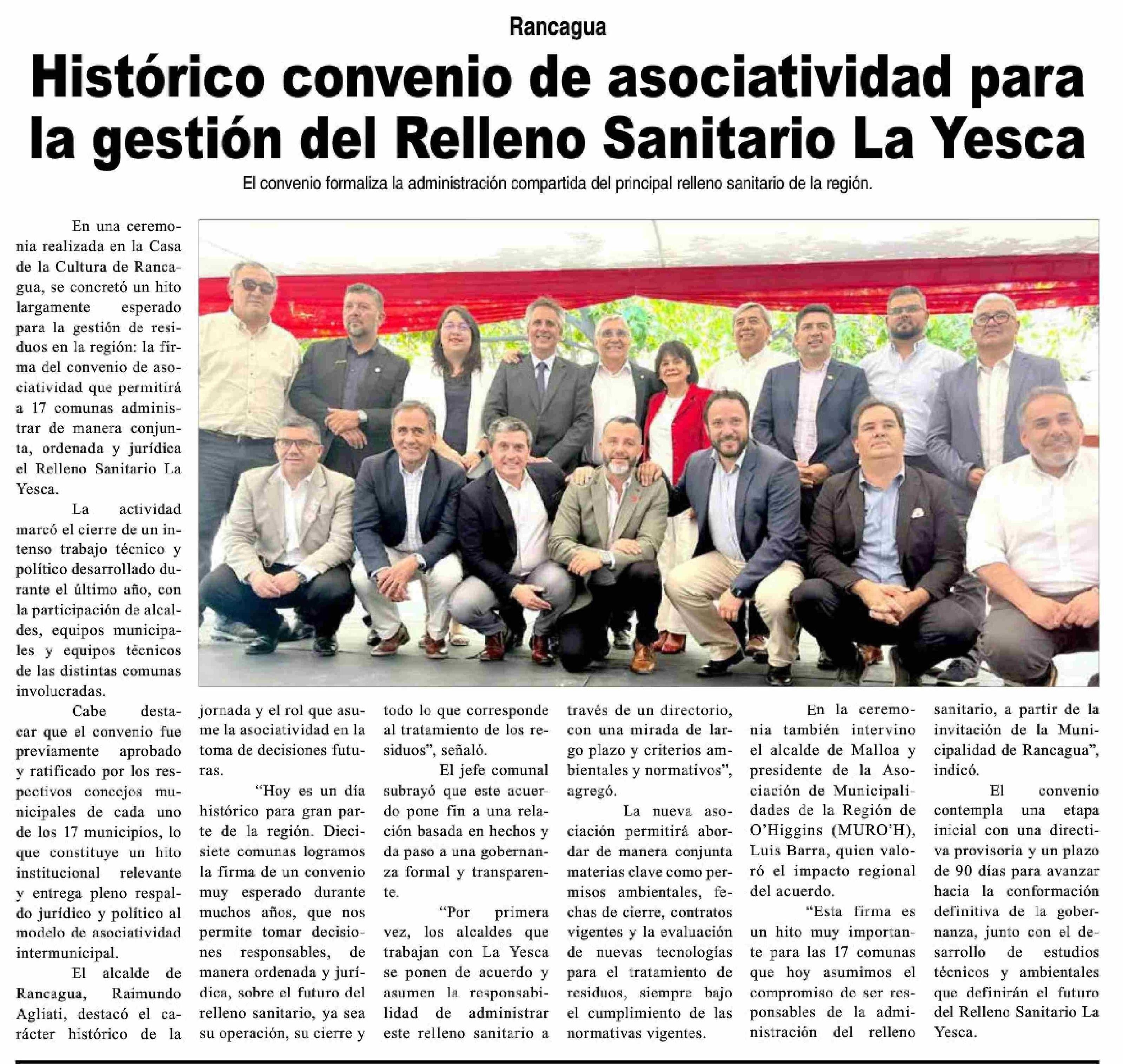 Histórico convenio de asociatividad para la gestión del Relleno Sanitario La Yesca 08-01-2026 Diario VI Región |