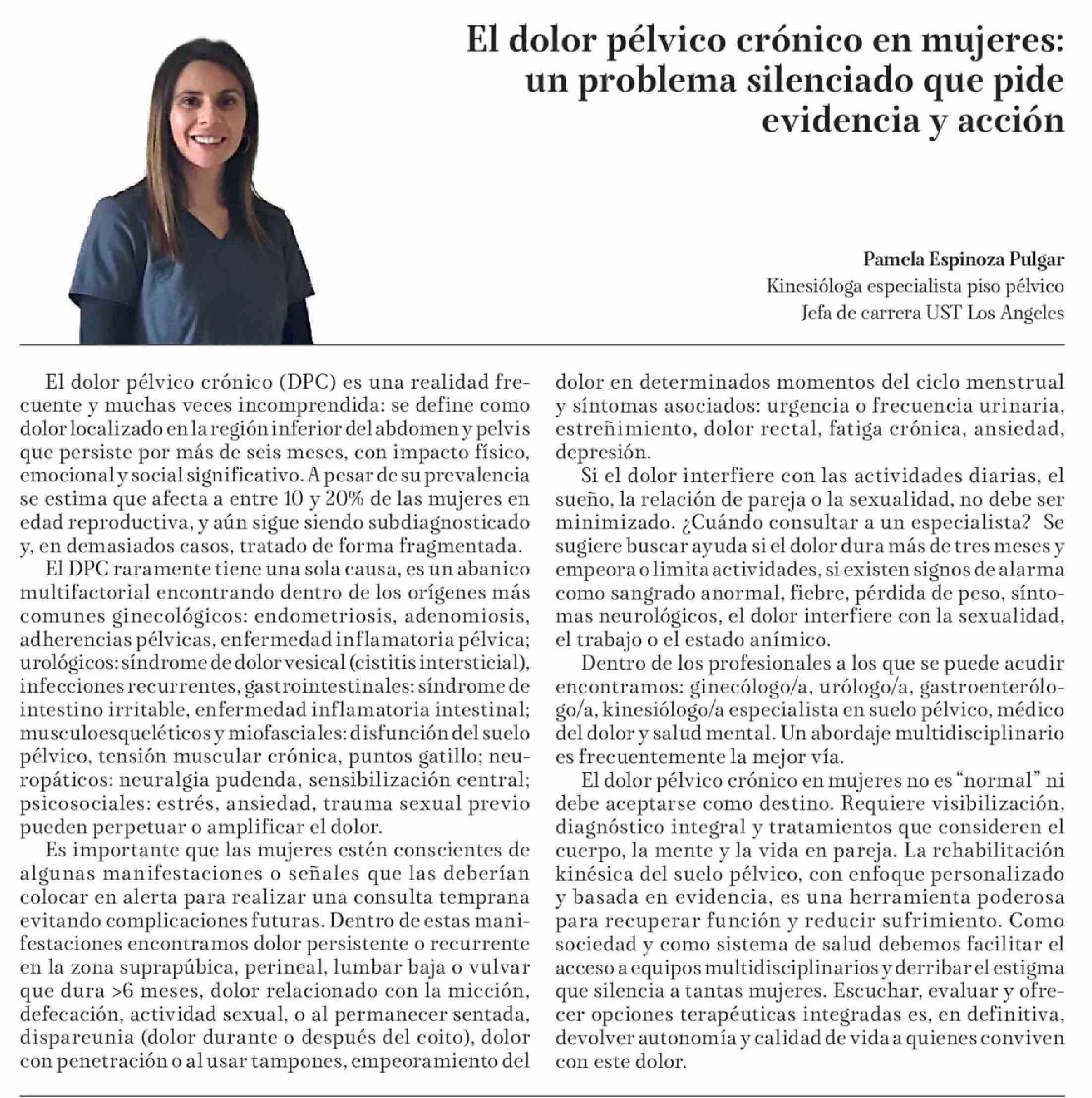Columnas de Opinión: El dolor pélvico crónico en mujeres: un problema silenciado que pide evidencia y acción 12-03-2026 La Tribuna |