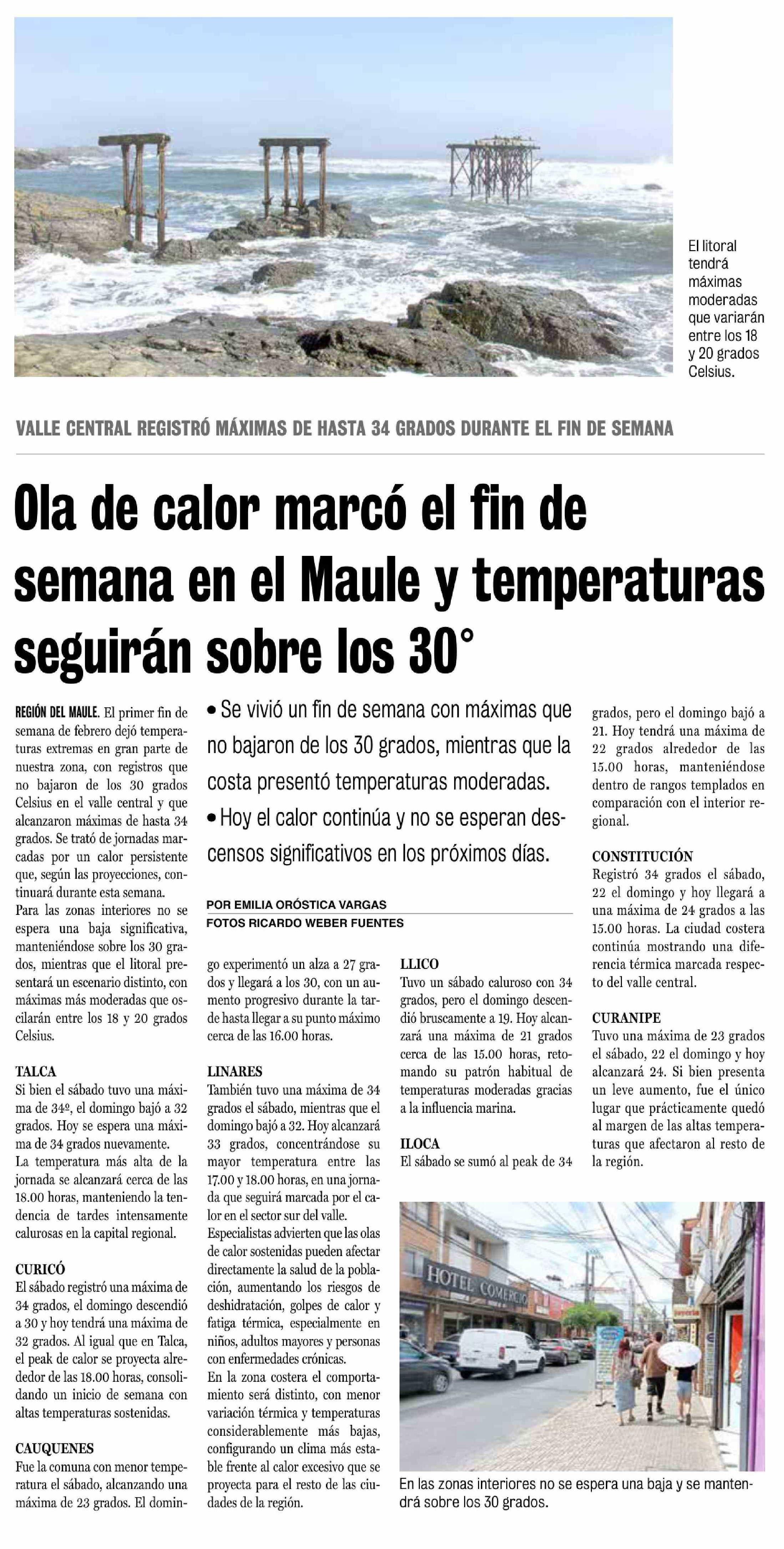 Ola de calor marcó el fin de semana en el Maule y temperaturas seguirán sobre los 30° 09-02-2026 La Prensa de Curicó |