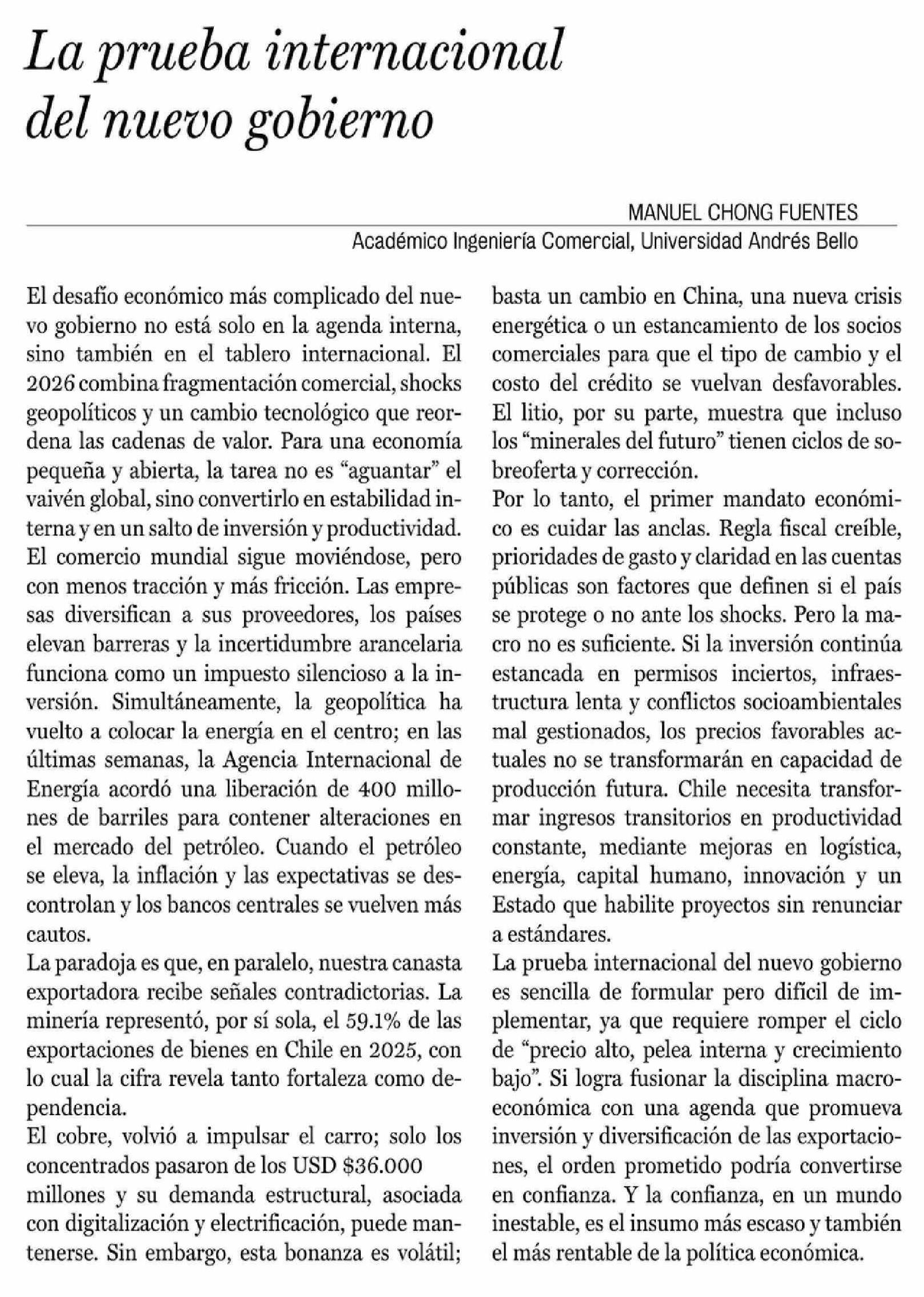 Cartas: La prueba internacional del nuevo gobierno 20-03-2026 La Prensa de Curicó |