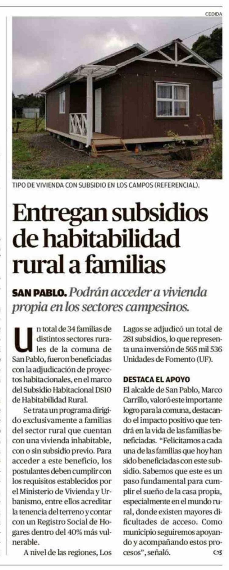 Título: Entregan subsidios de habitabilidad rural a familias