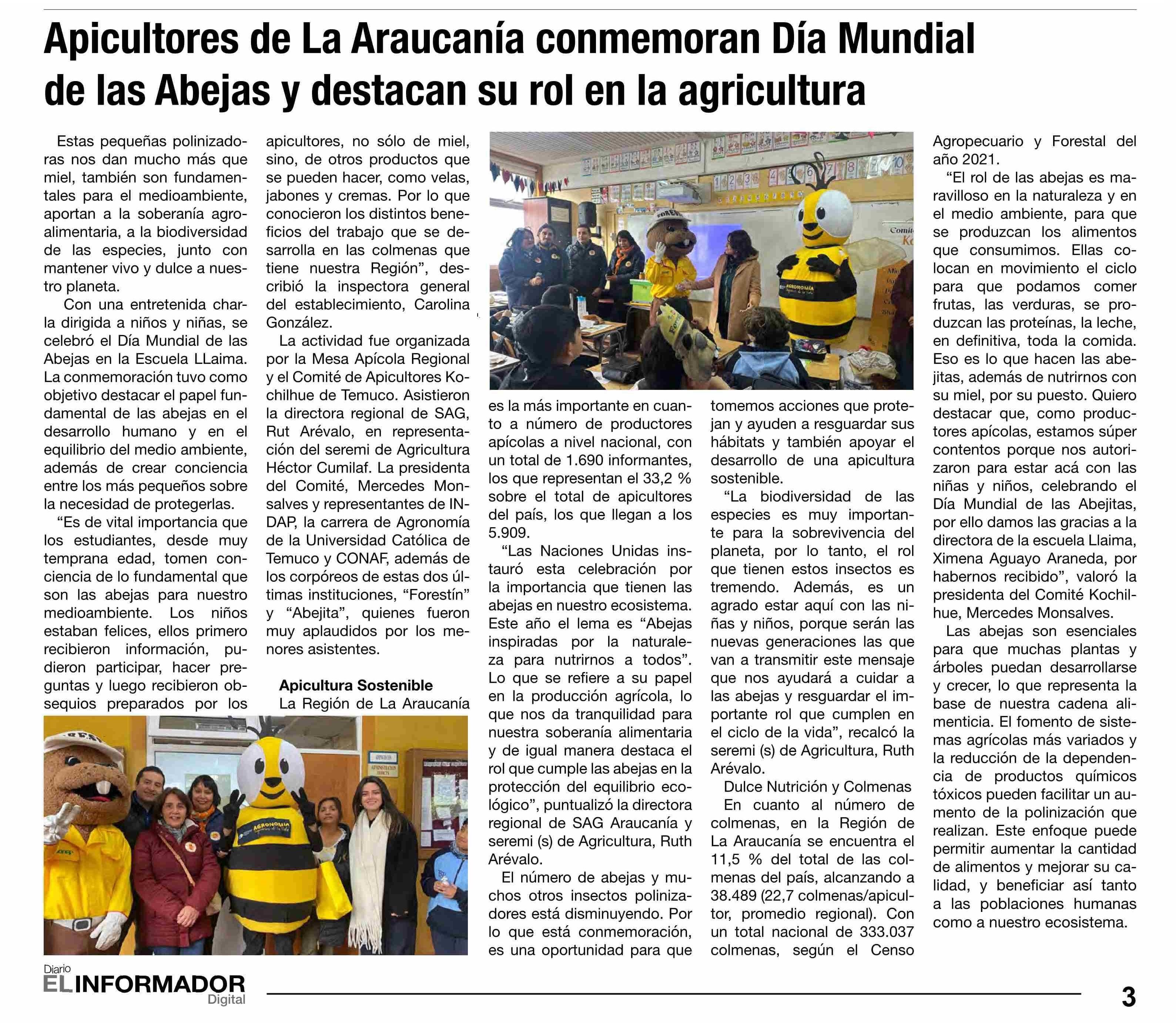 Apicultores de La Araucanía conmemoran Día Mundial de las Abejas y destacan su rol en la agricultura 23-05-2025 El Informador |