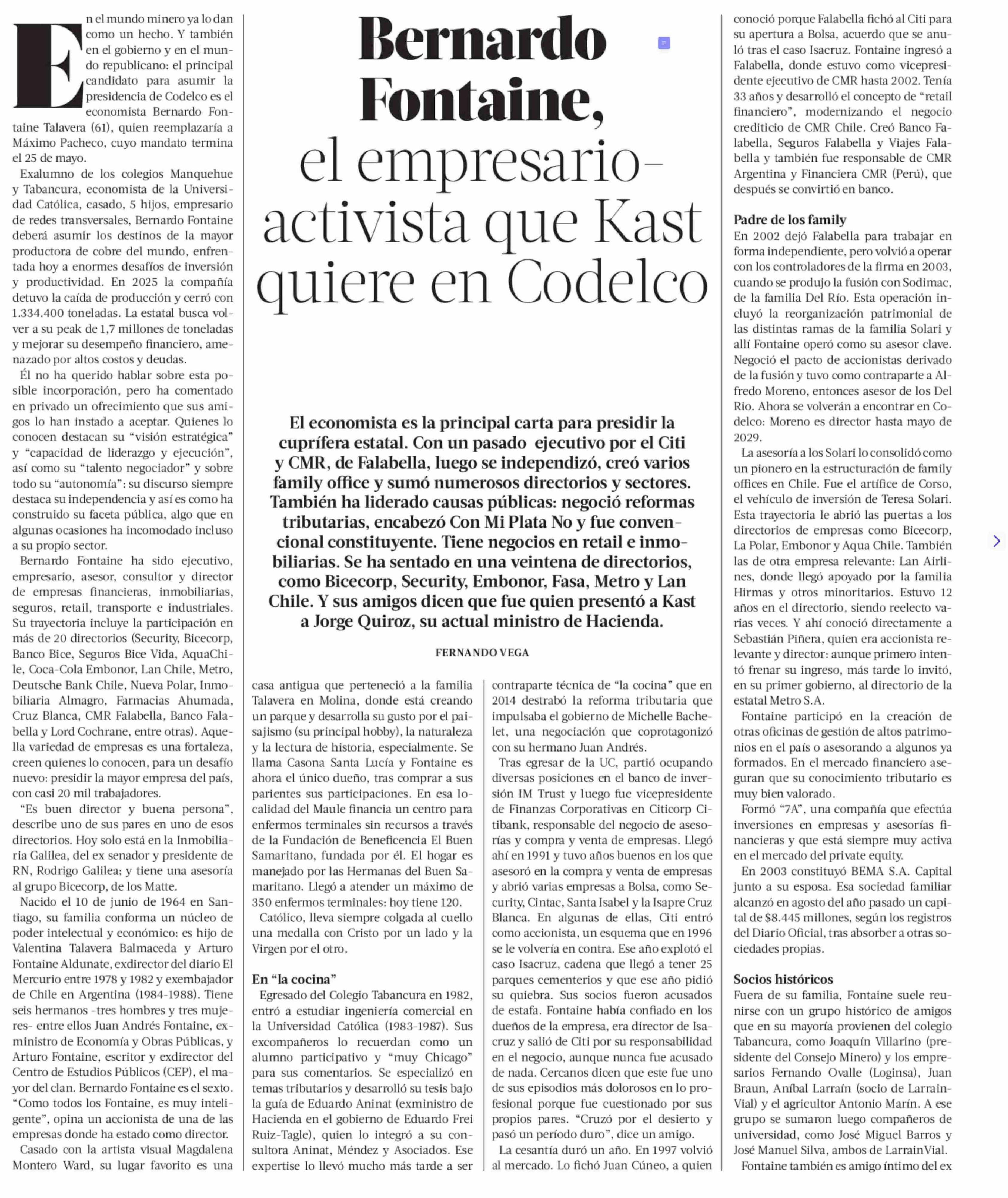 | Título: | Bernardo Fontaine, el empresarioactivista que Kast quiere en Codelco |