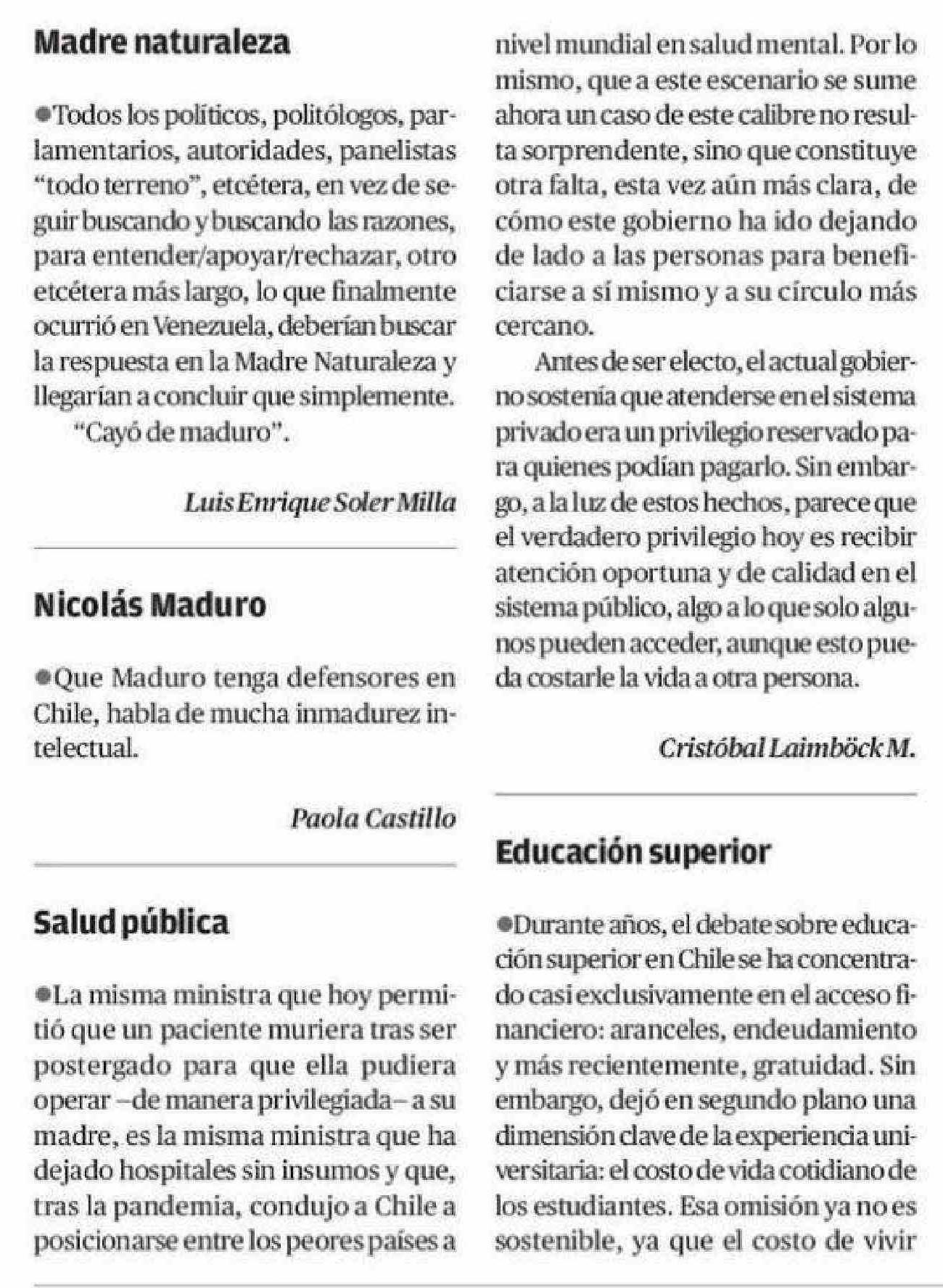 Cartas: Salud pública 09-01-2026 El Mercurio de Antofagasta |