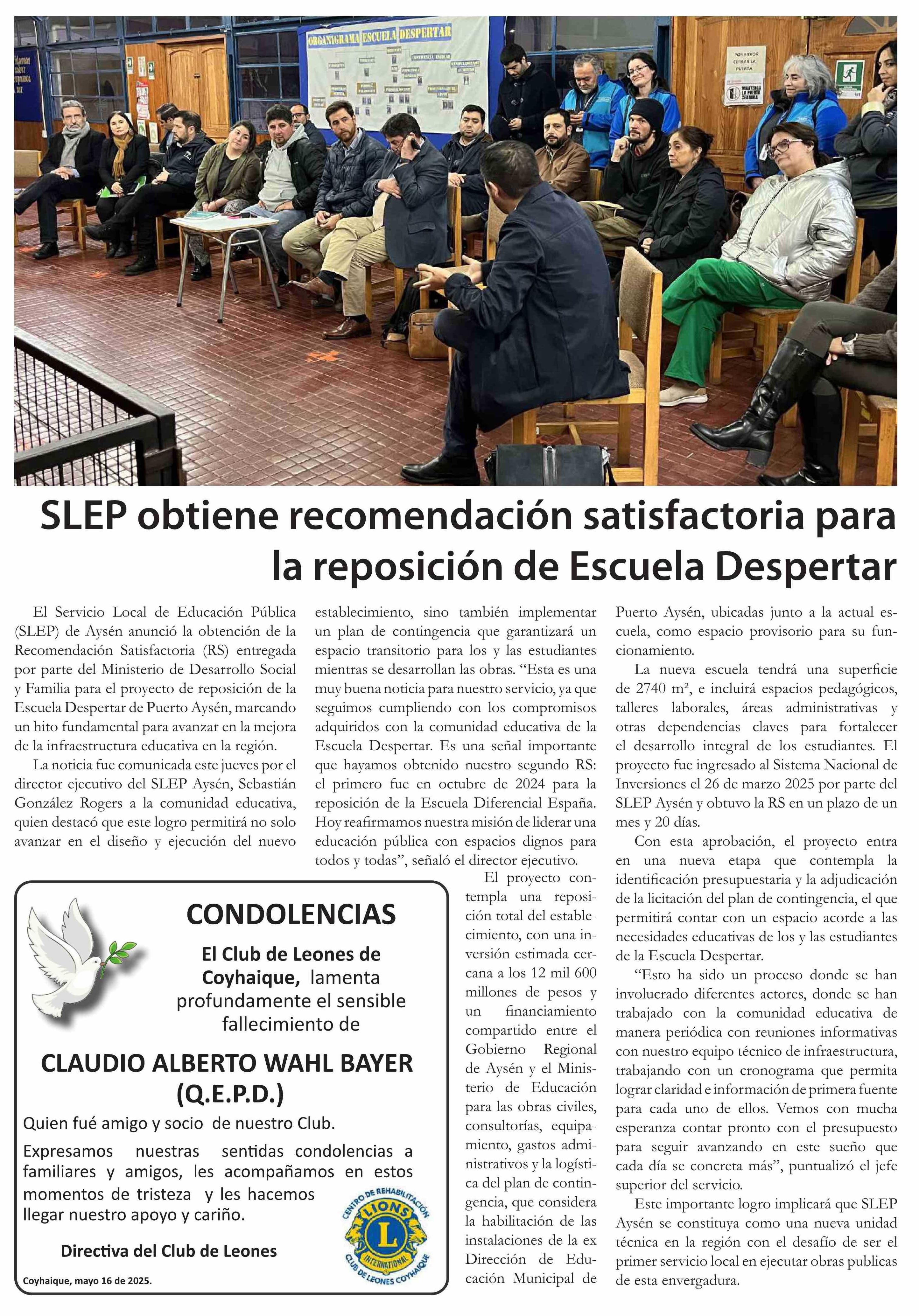 Fecha: 16-05-2025 Sector: Noticia general Región: Región Aysén del General Carlos Ibáñez del Campo