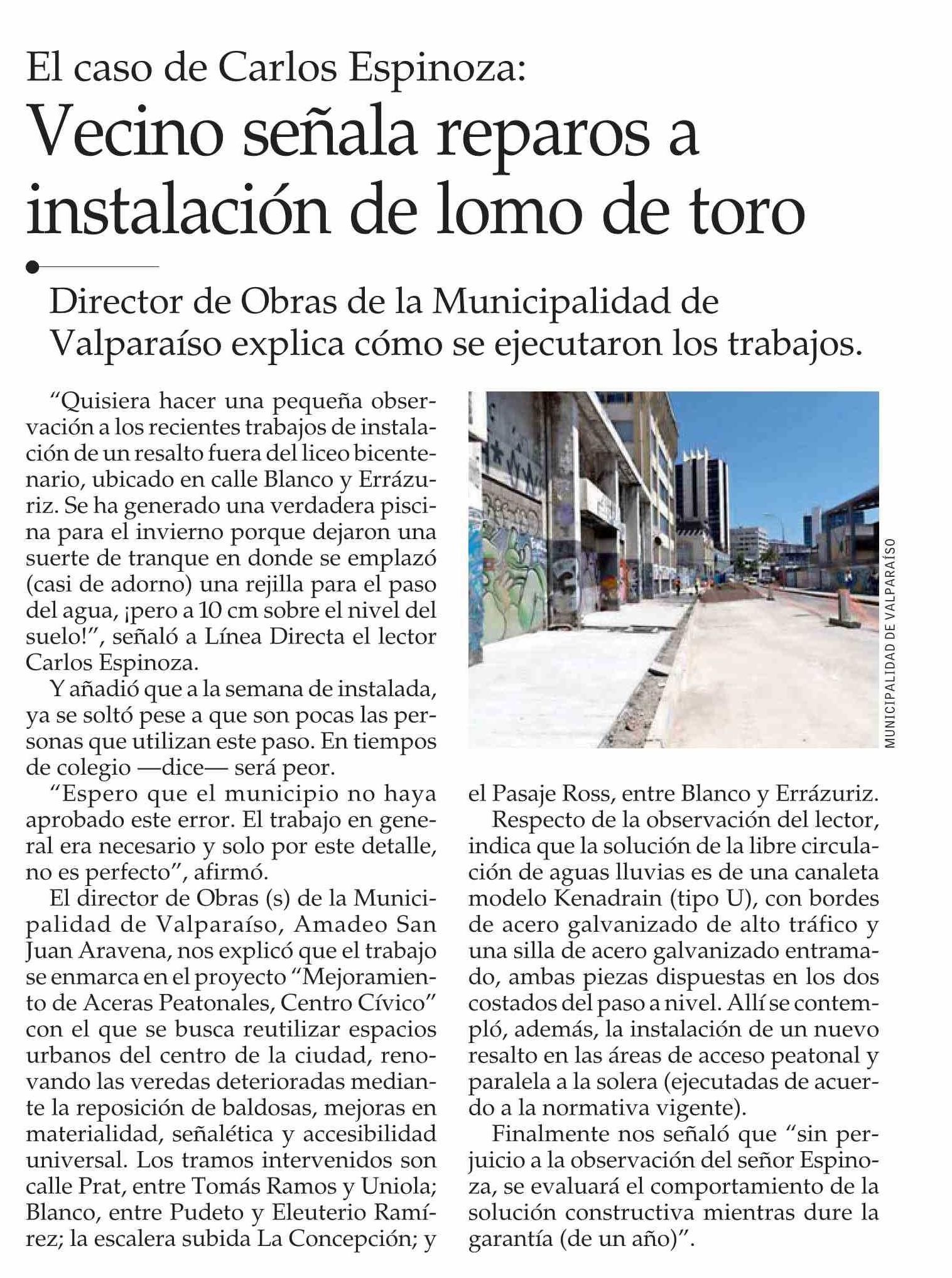 Vecino señala reparos a instalación de lomo de toro 08-02-2026 El Mercurio |