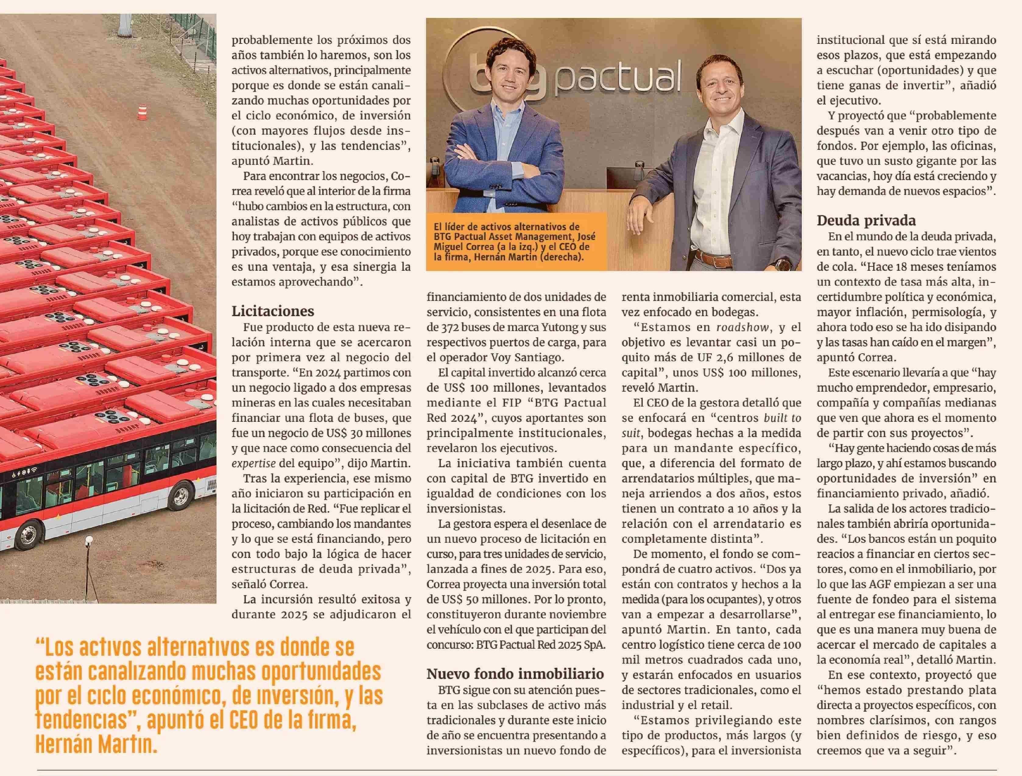 El desconocido ingreso de BTG Pactual al financiamiento de flotas de buses Red 26-01-2026 Diario Financiero |