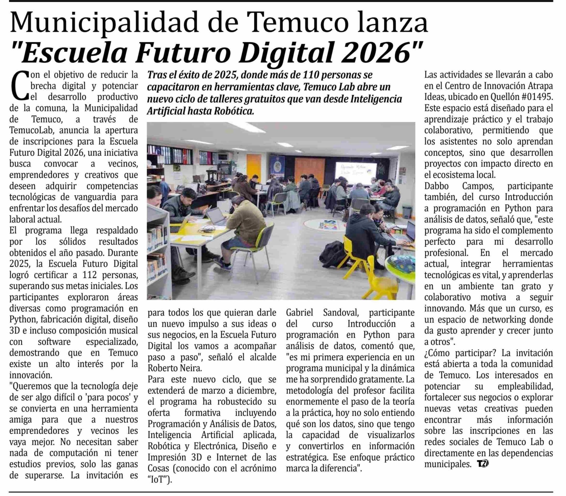 | Título: | Municipalidad de Temuco lanza "Escuela Futuro Digital 2026" |