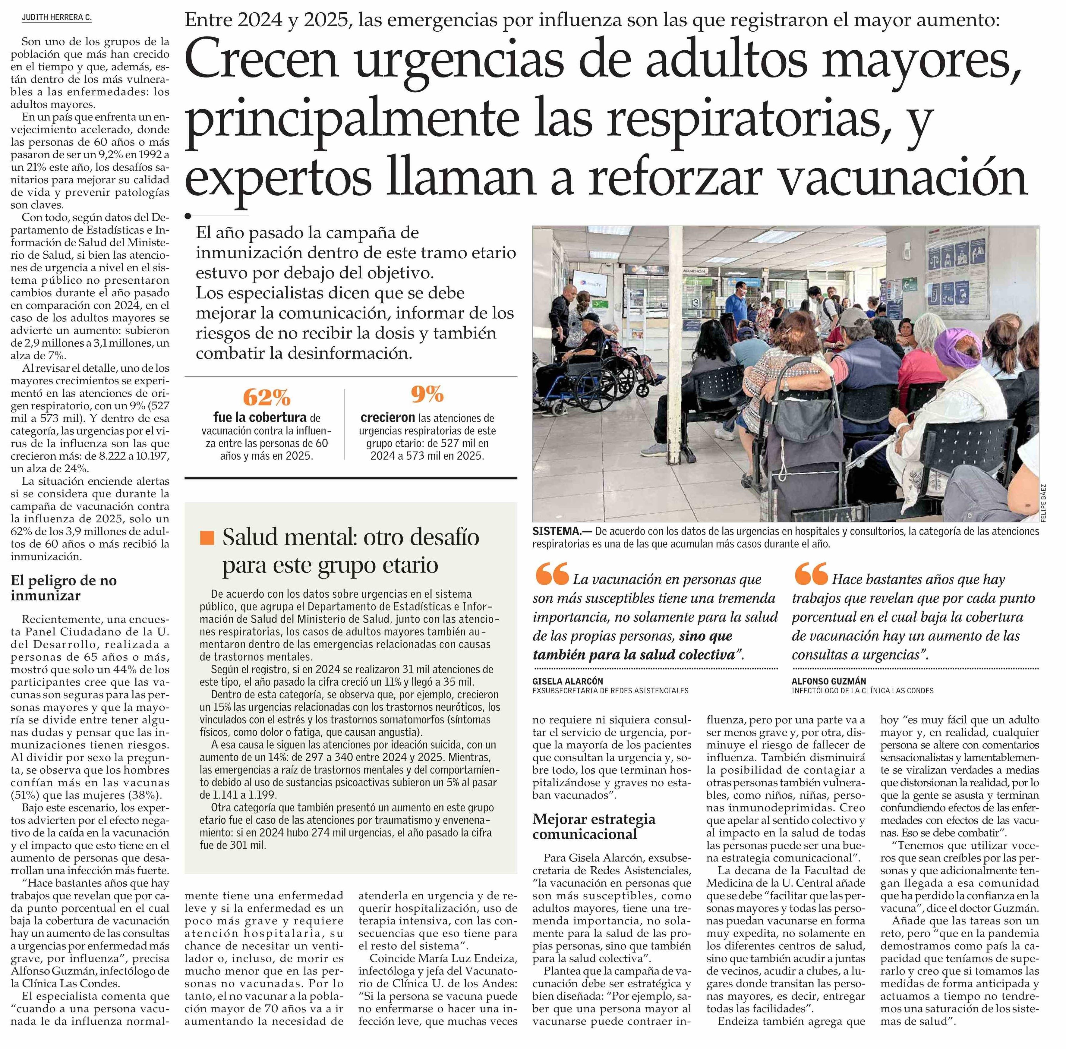 Título: Crecen urgencias de adultos mayores, principalmente las respiratorias, y expertos llaman a reforzar vacunación