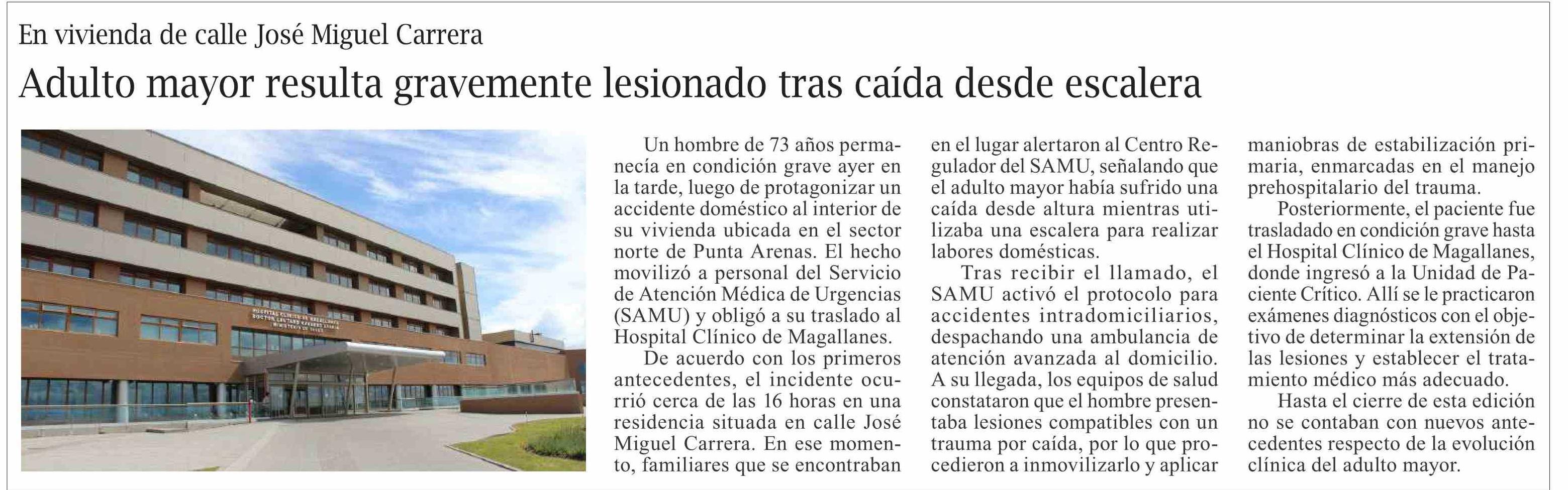 Título: Adulto mayor resulta gravemente lesionado tras caída desde escalera