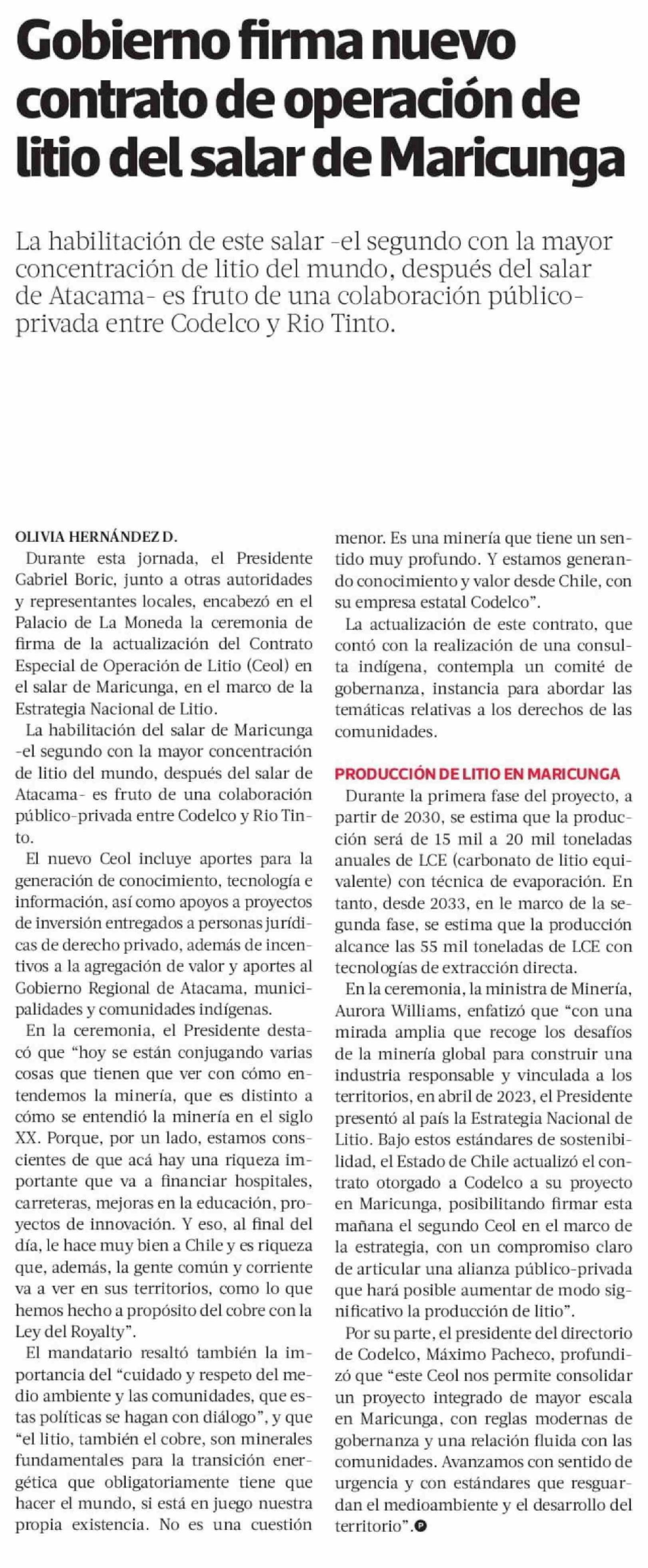 Título: Gobierno firma nuevo contrato de operación de litio del salar de Maricunga