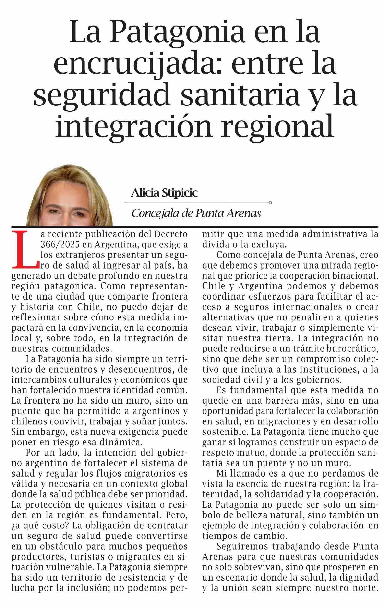 Título: COLUMNAS DE OPINIÓN: La Patagonia en la encrucijada: entre la seguridad sanitaria y la integración regional