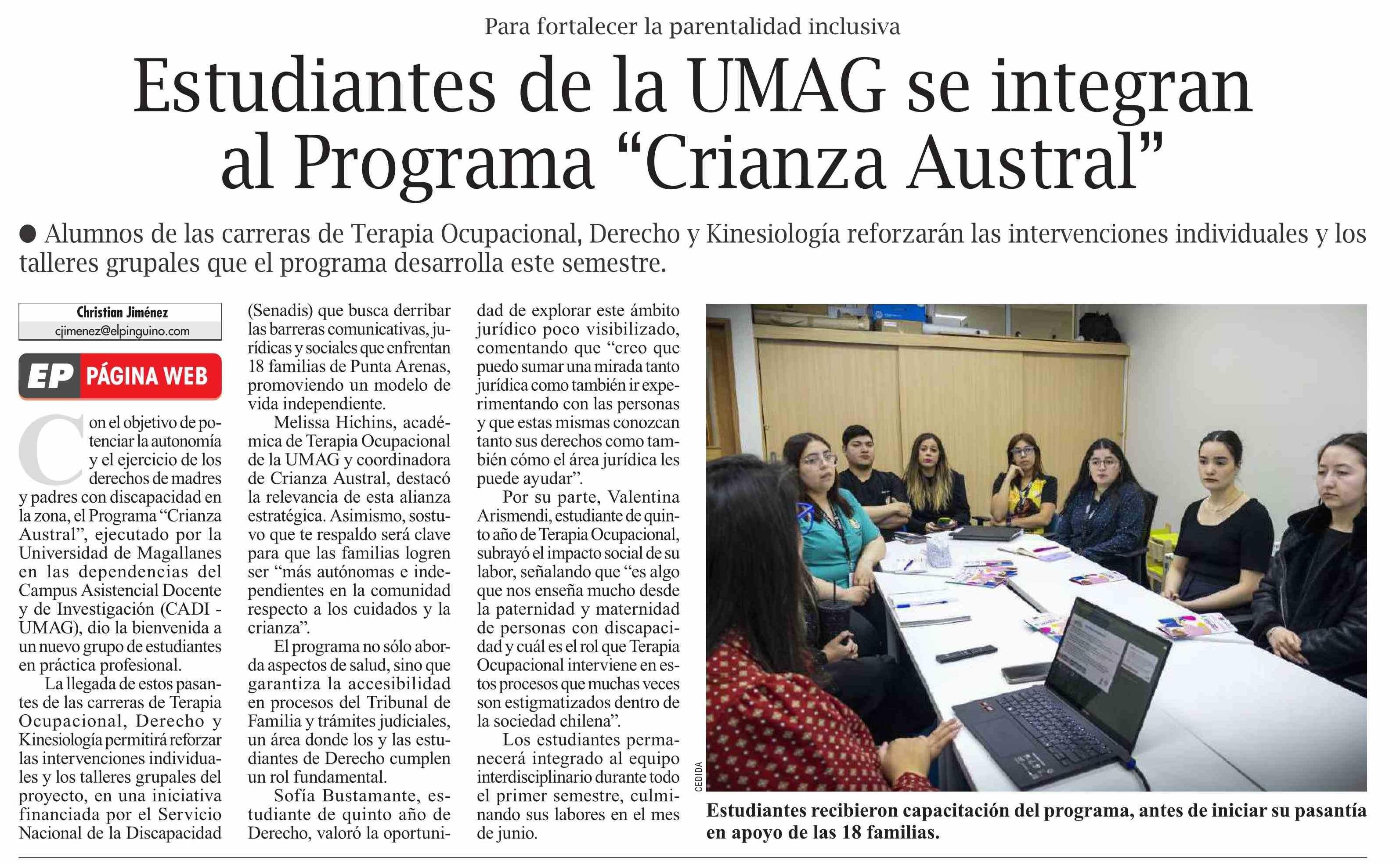 Estudiantes de la UMAG se integran al Programa “Crianza Austral” 06-04-2026 El Pingüino |
