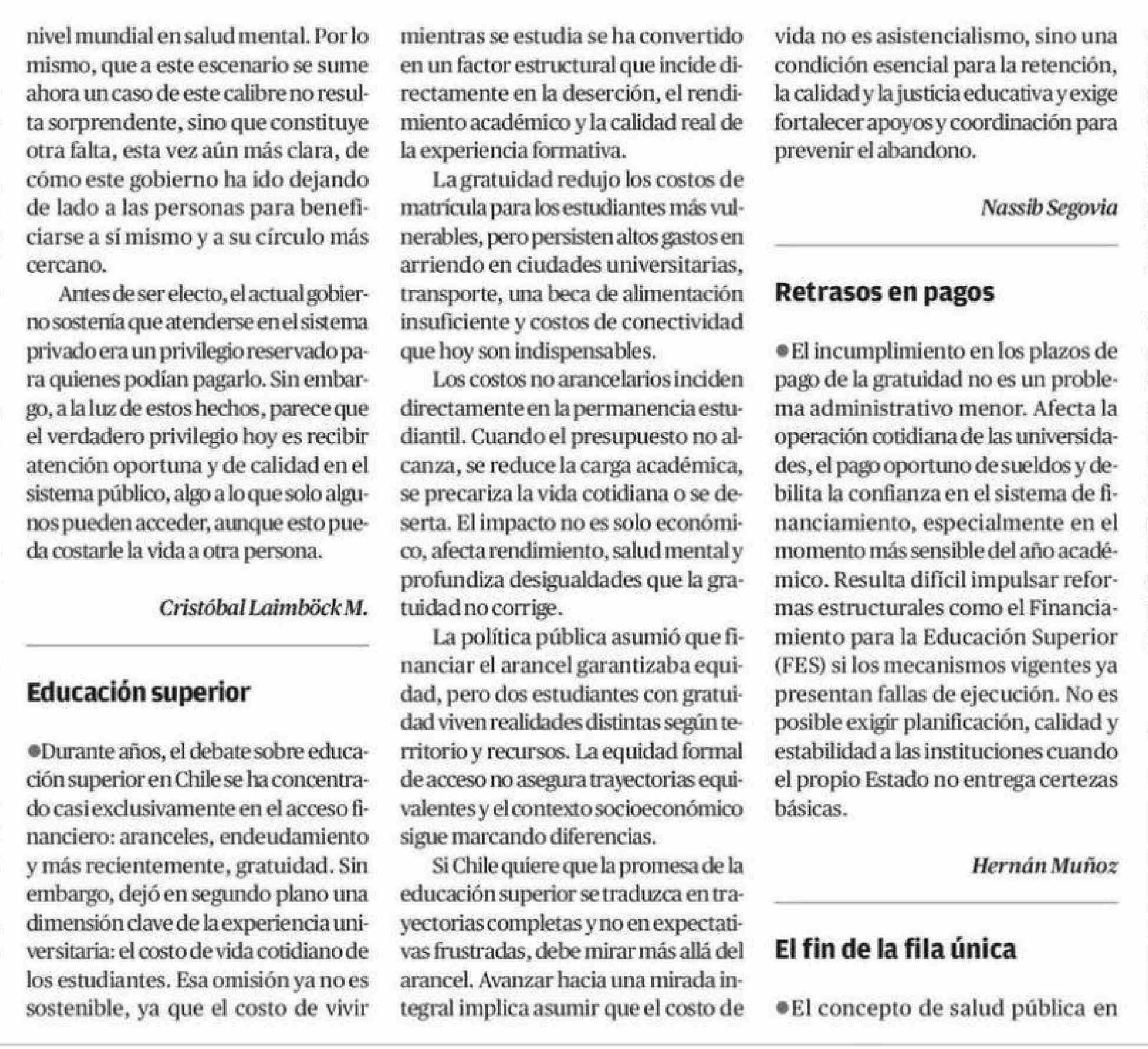 Cartas: Educación superior 09-01-2026 El Mercurio de Antofagasta |