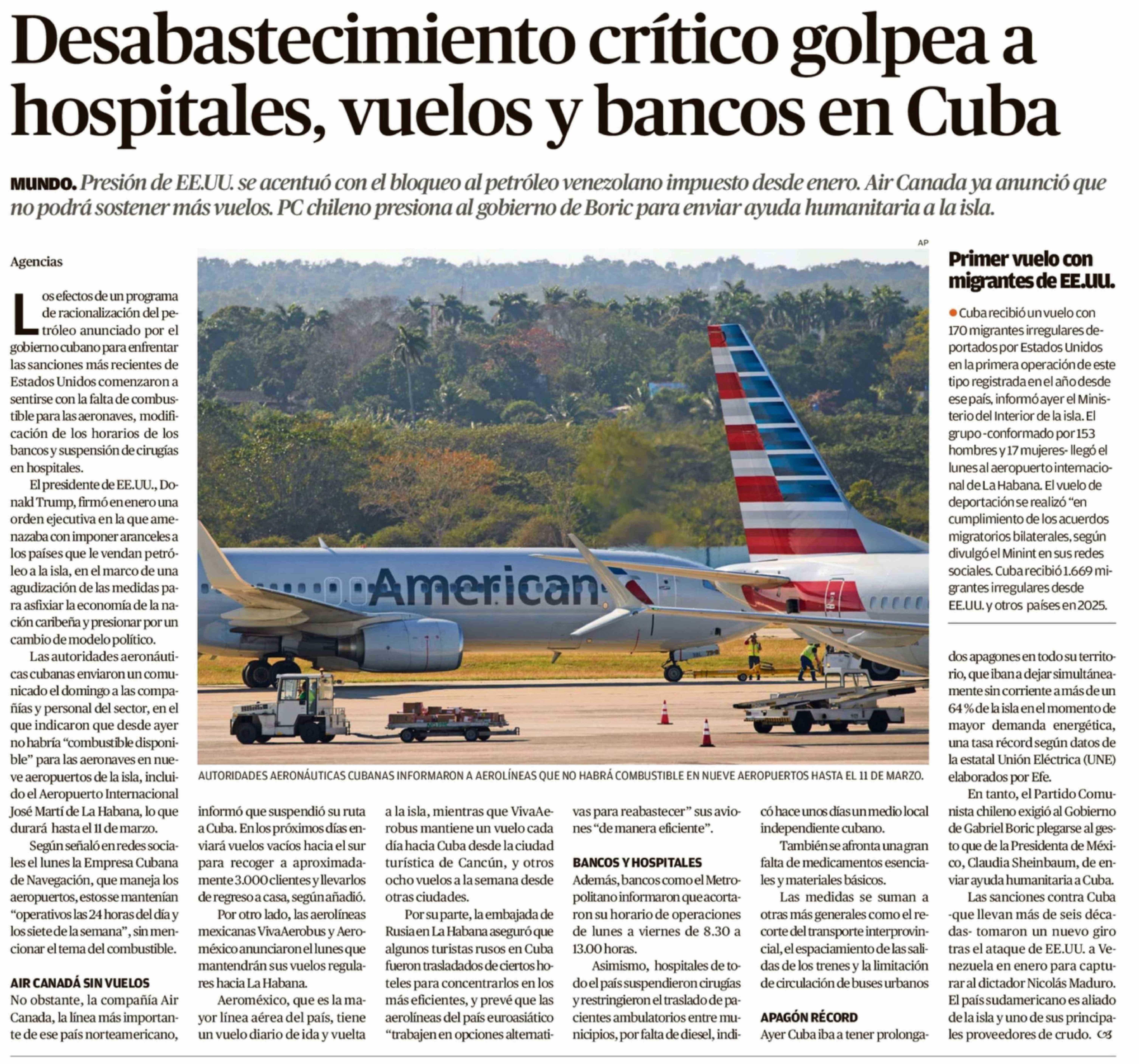 Desabastecimiento crítico golpea a hospitales, vuelos y bancos en Cuba 11-02-2026 El Austral de Osorno |