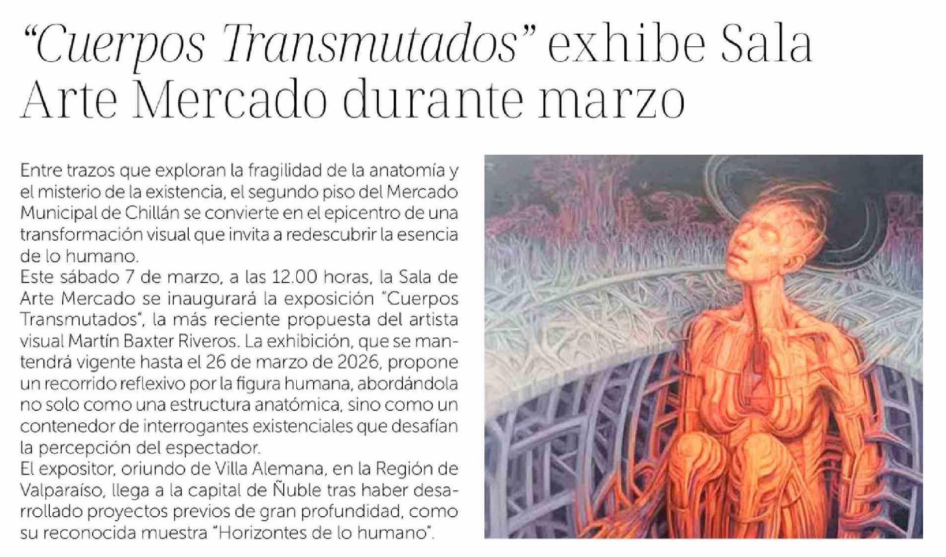 "Cuerpos Transmutados" exhibe Sala Arte Mercado durante marzo 04-03-2026 La Discusión |