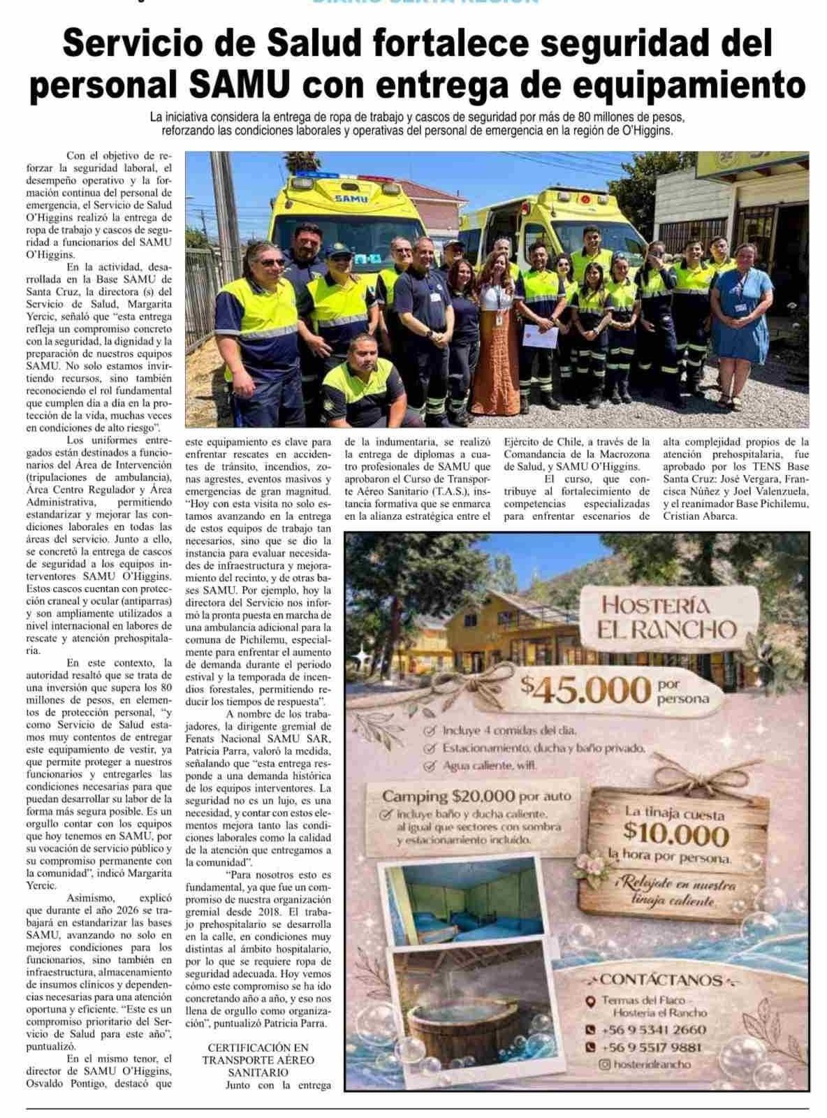 Fecha: 16-01-2026 Sector: Noticia general Región: Región del Libertador General Bernardo O'Higgins