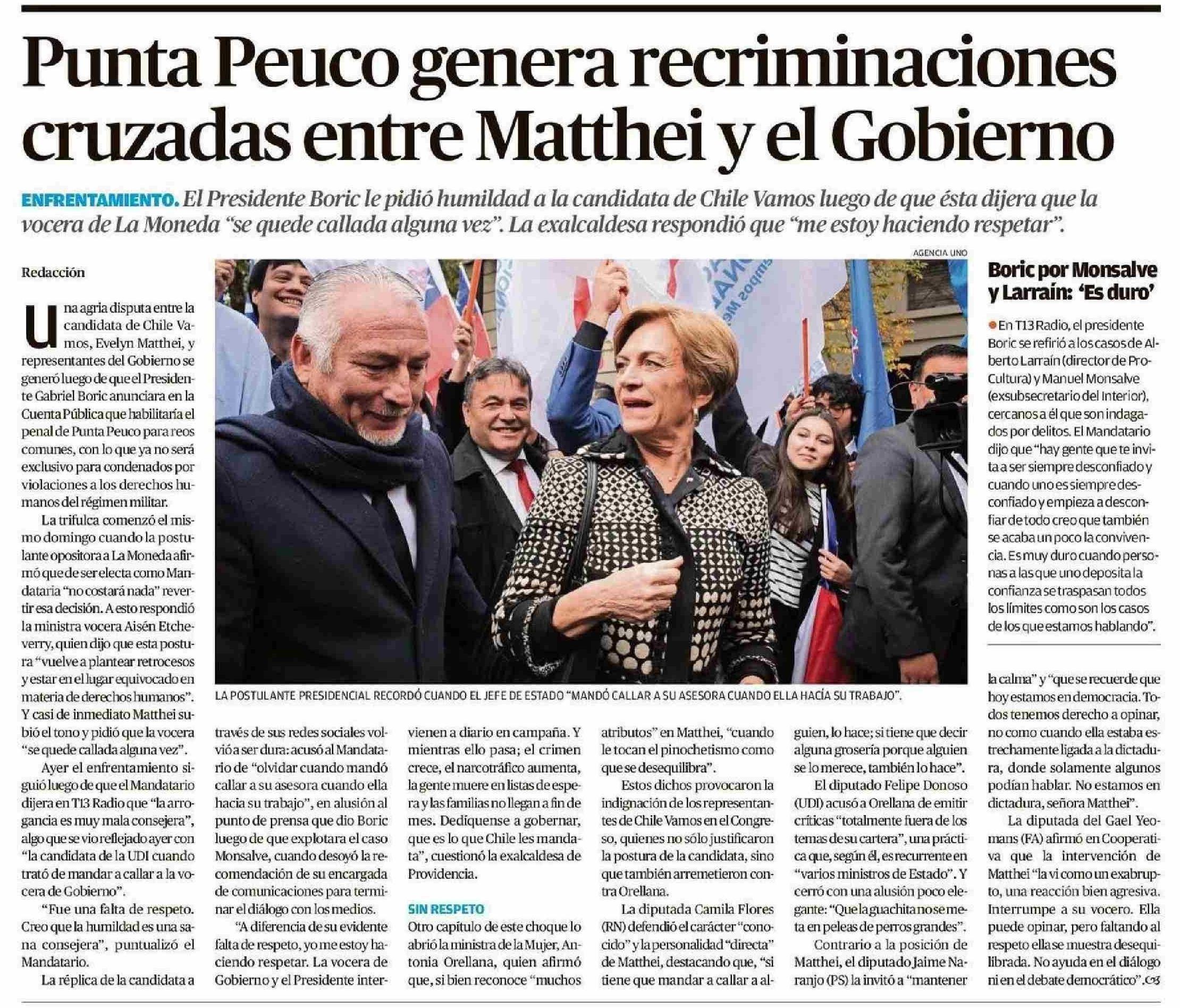 Punta Peuco genera recriminaciones cruzadas entre Matthei y el Gobierno 04-06-2025 El Austral de Osorno |