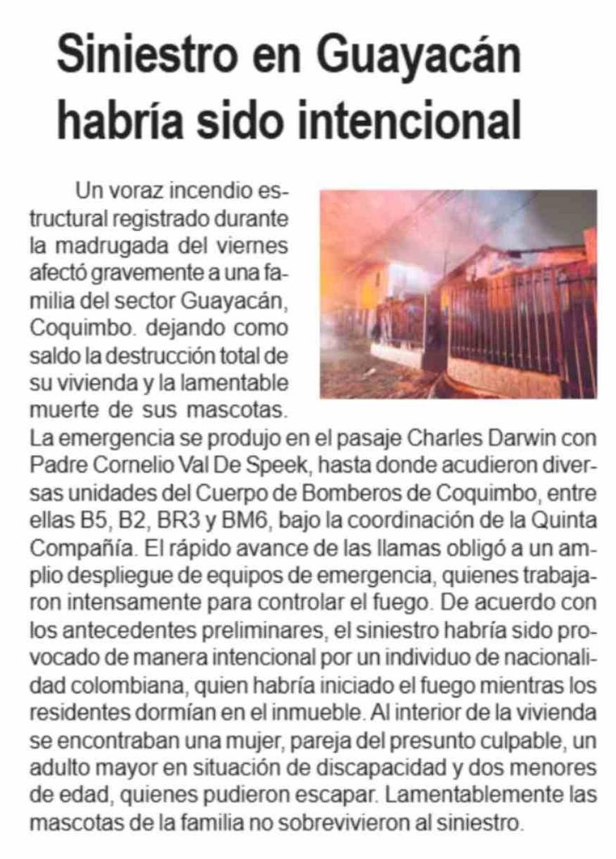 Siniestro en Guayacán habría sido intencional 04-04-2026 Diario la Región |