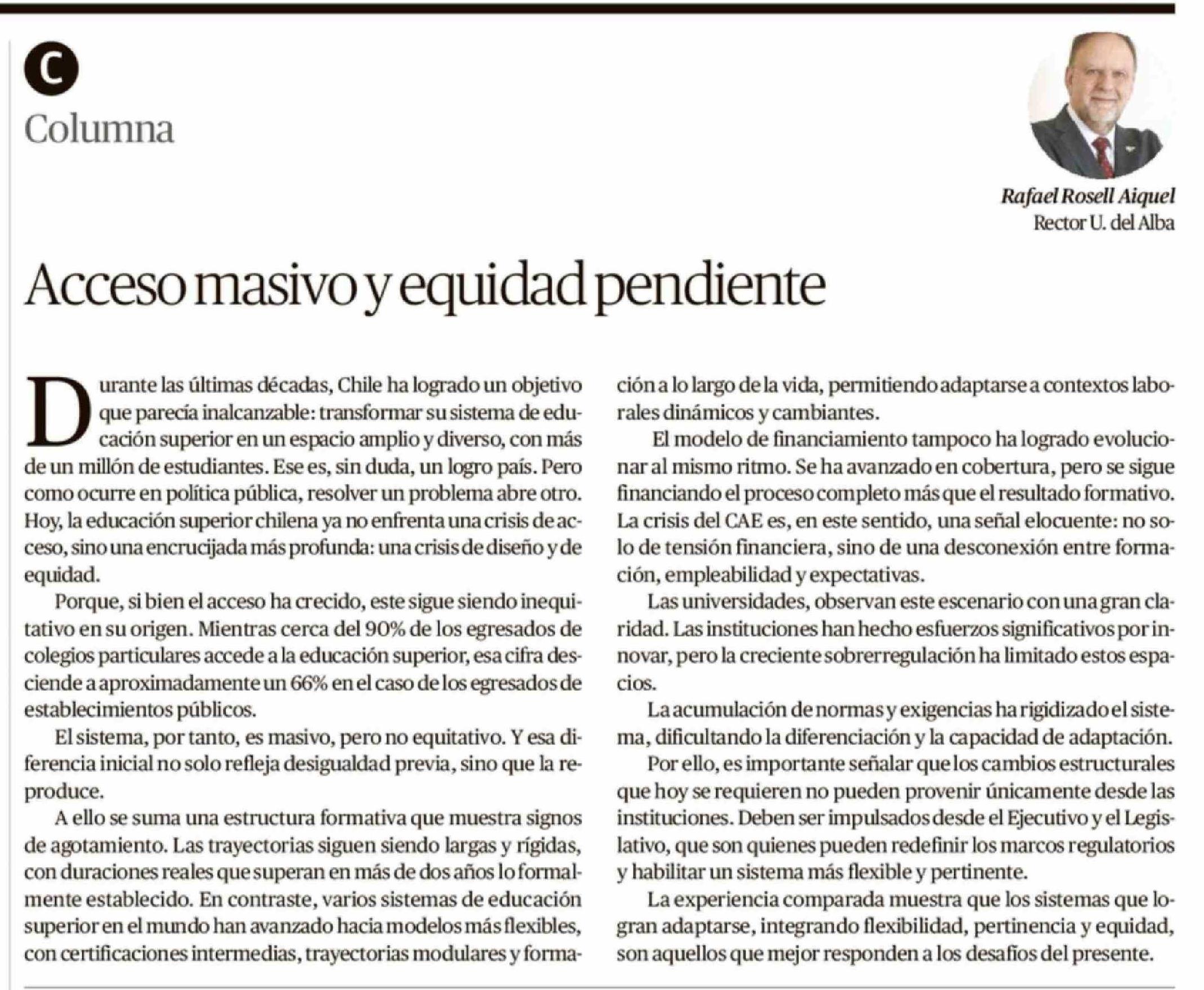Título: Columnas de Opinión: Acceso masivo y equidad pendiente