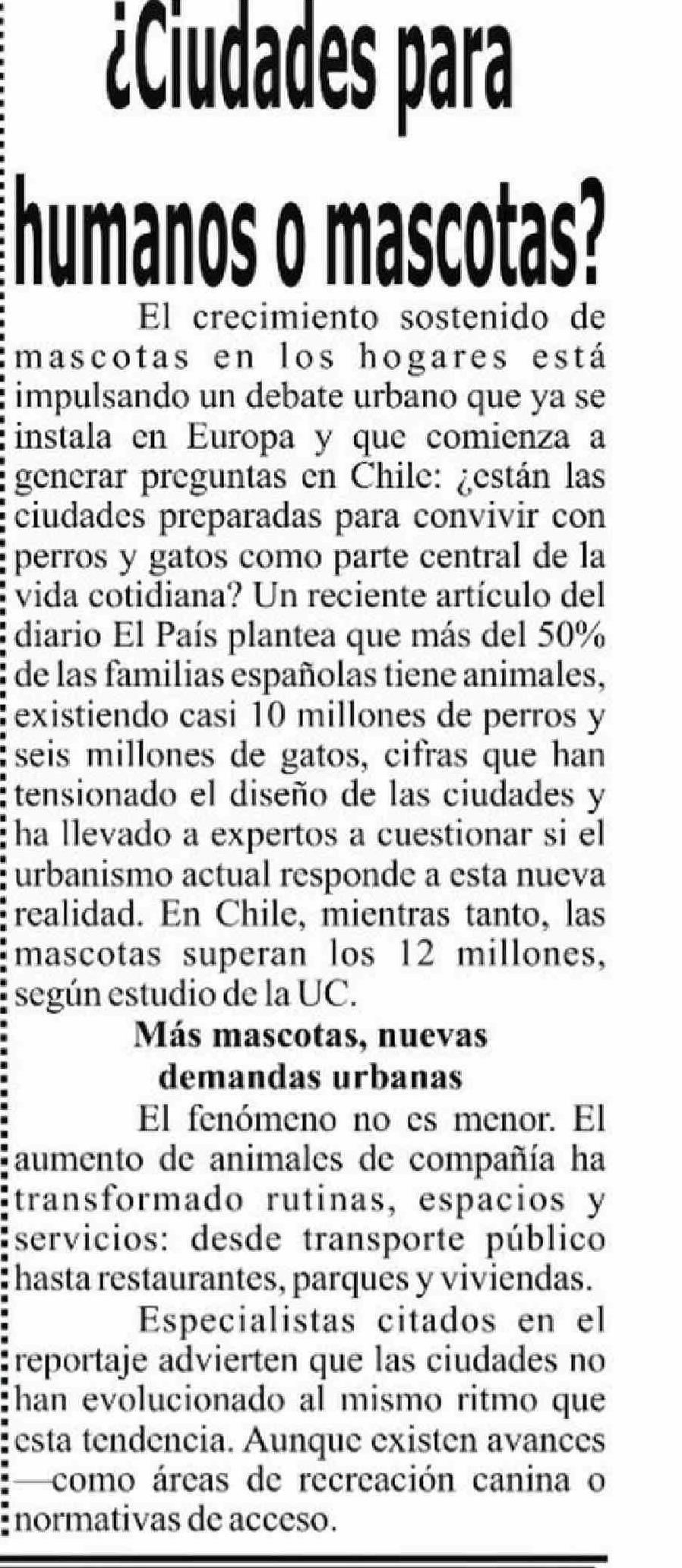 | Título: | ¿ Ciudades para humanos o mascotas? |