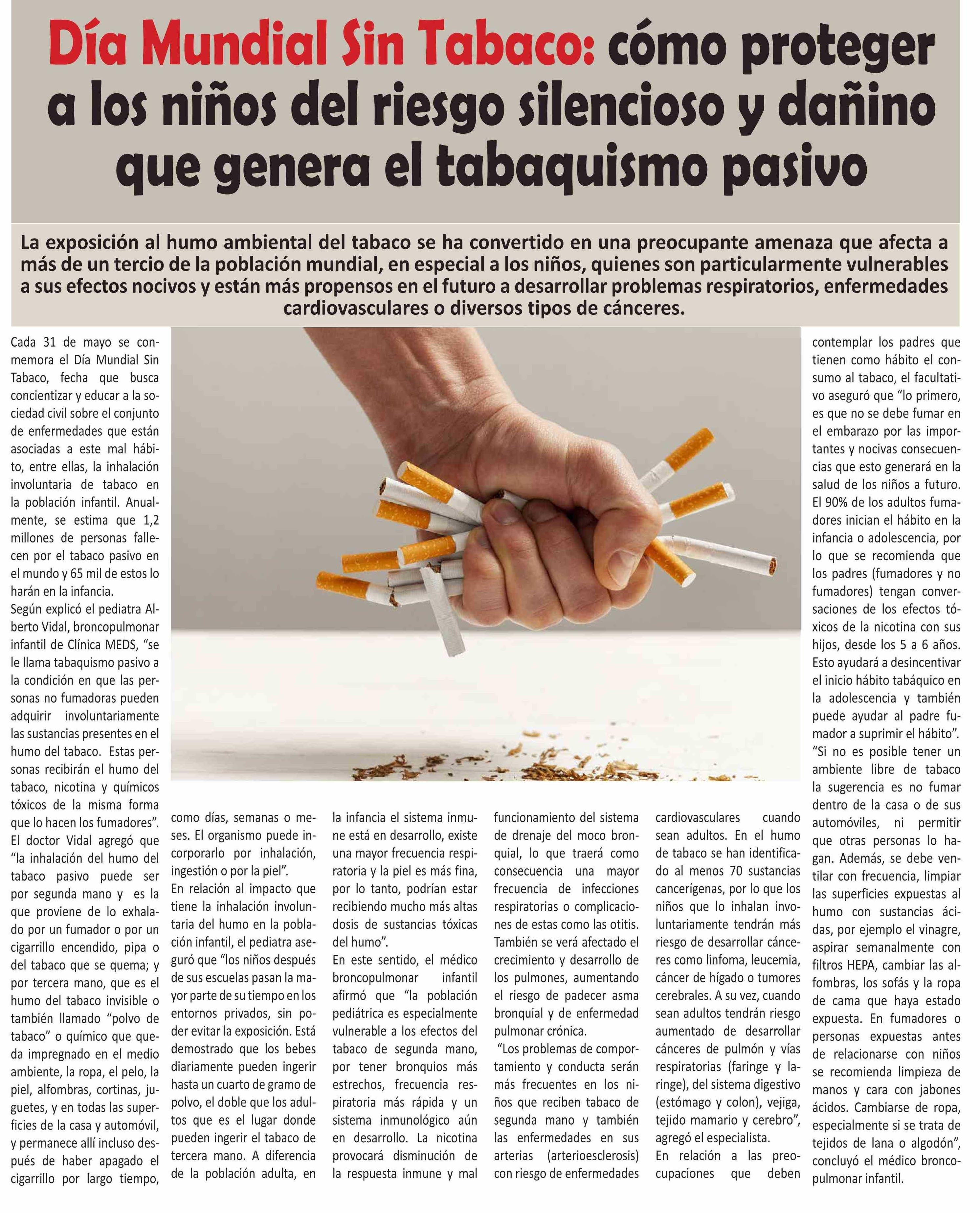 Título: Día Mundial Sin Tabaco: cómo proteger a los niños del riesgo silencioso y dañino que genera el tabaquismo pasivo