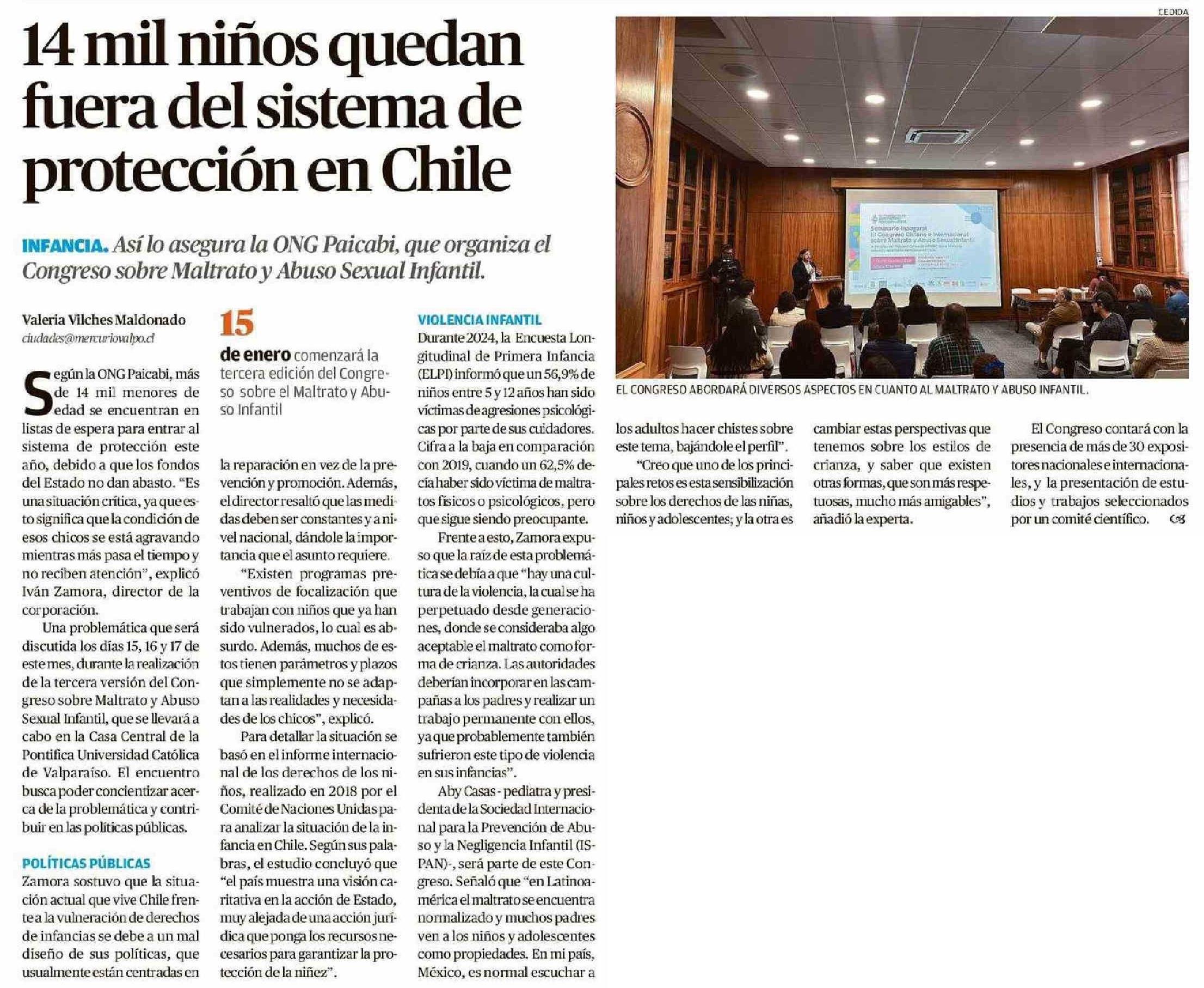 14 mil niños quedan fuera del sistema de protección en Chile 12-01-2025 El Mercurio de Valparaíso |