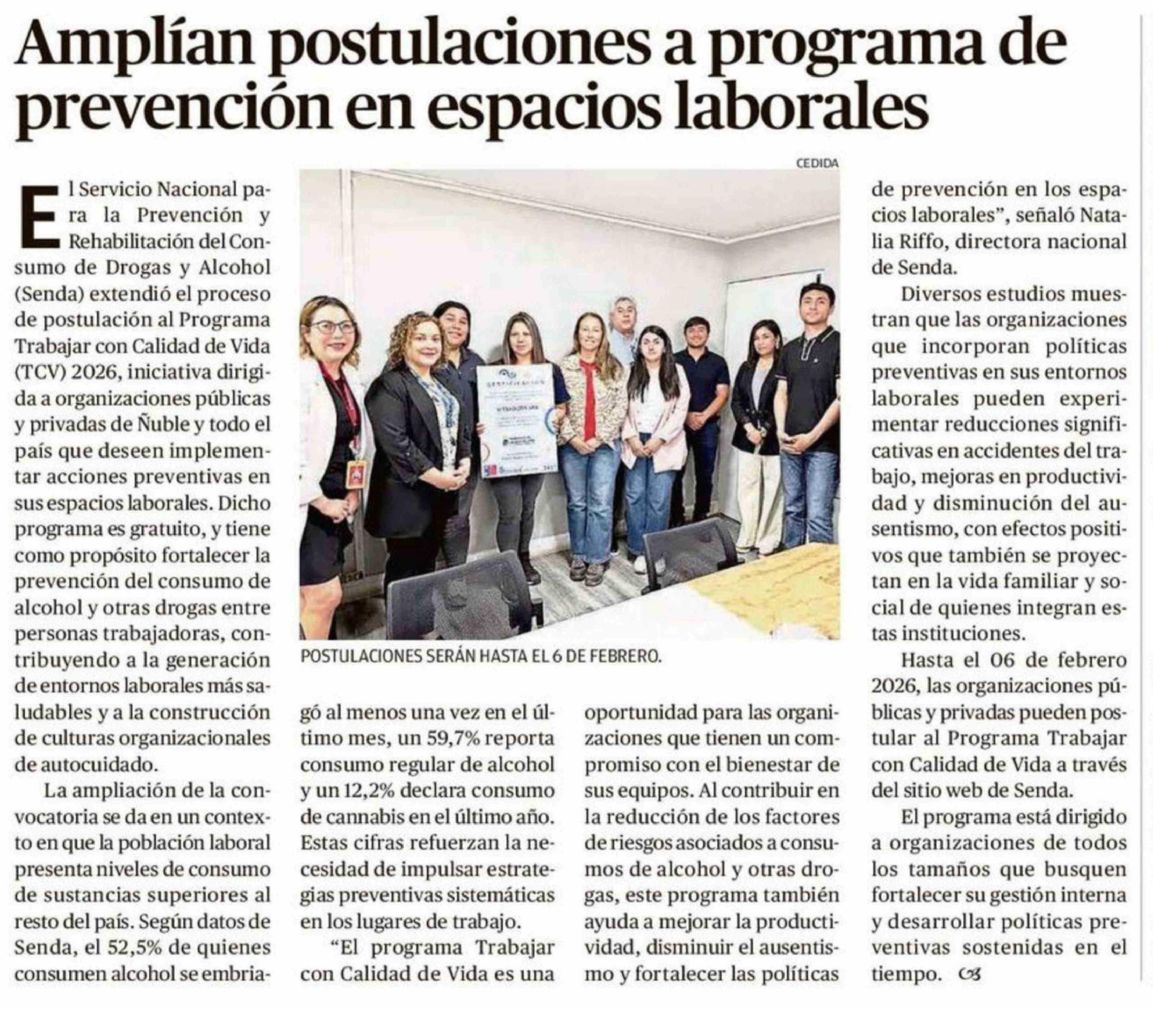 Amplían postulaciones a programa de prevención en espacios laborales 01-02-2026 Crónica de Chillán |