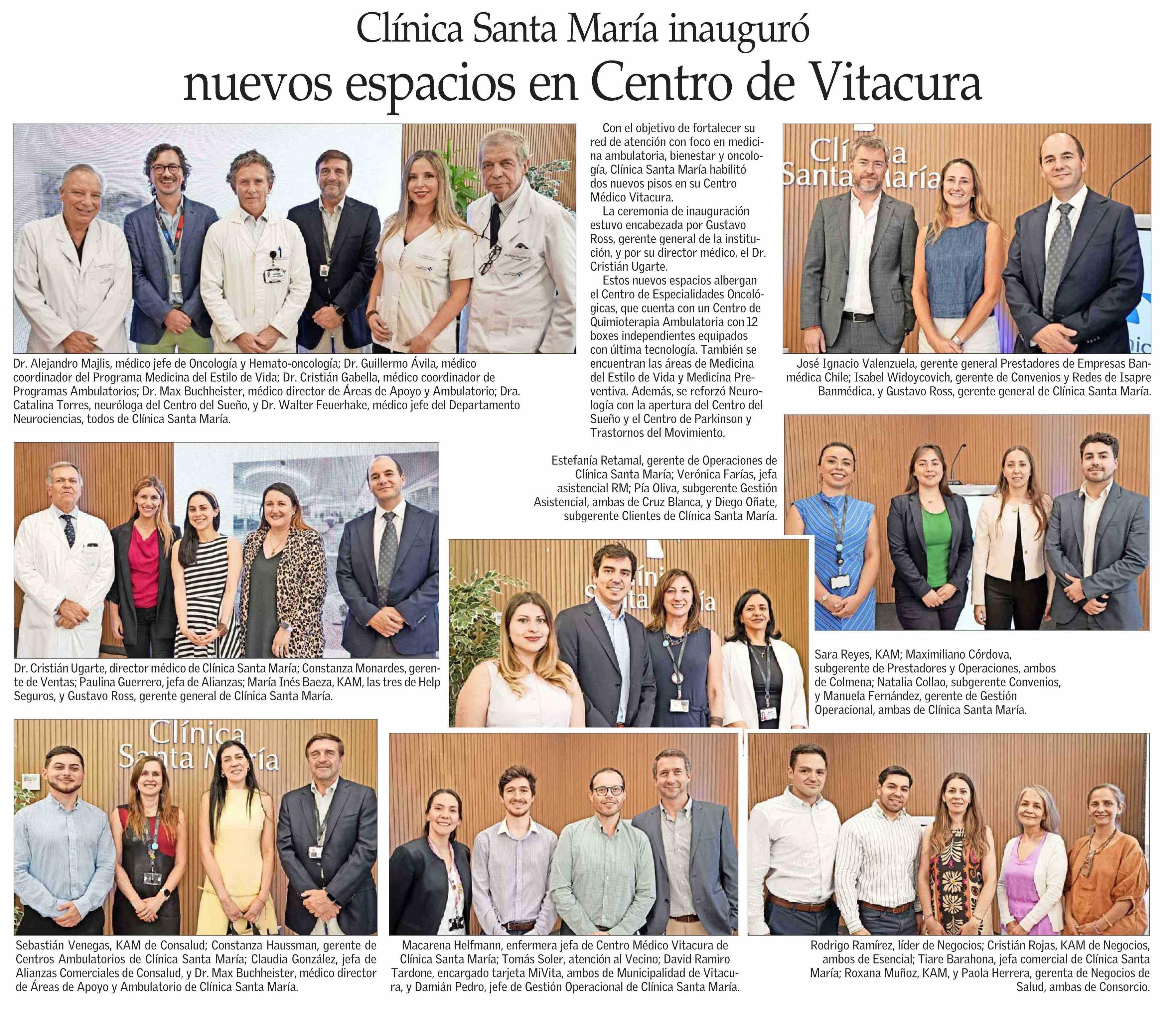| Título: | Clínica Santa María inauguró nuevos espacios en Centro de Vitacura |