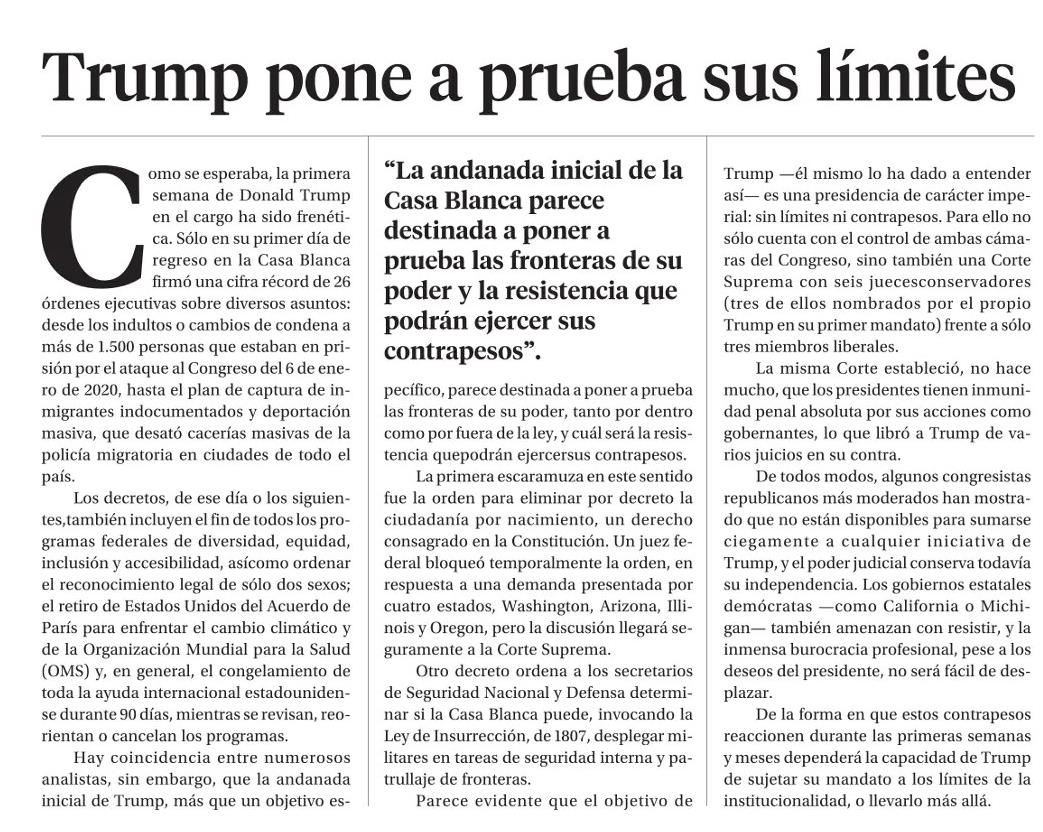 Trump pone a prueba sus límites 27-01-2025 La Segunda |