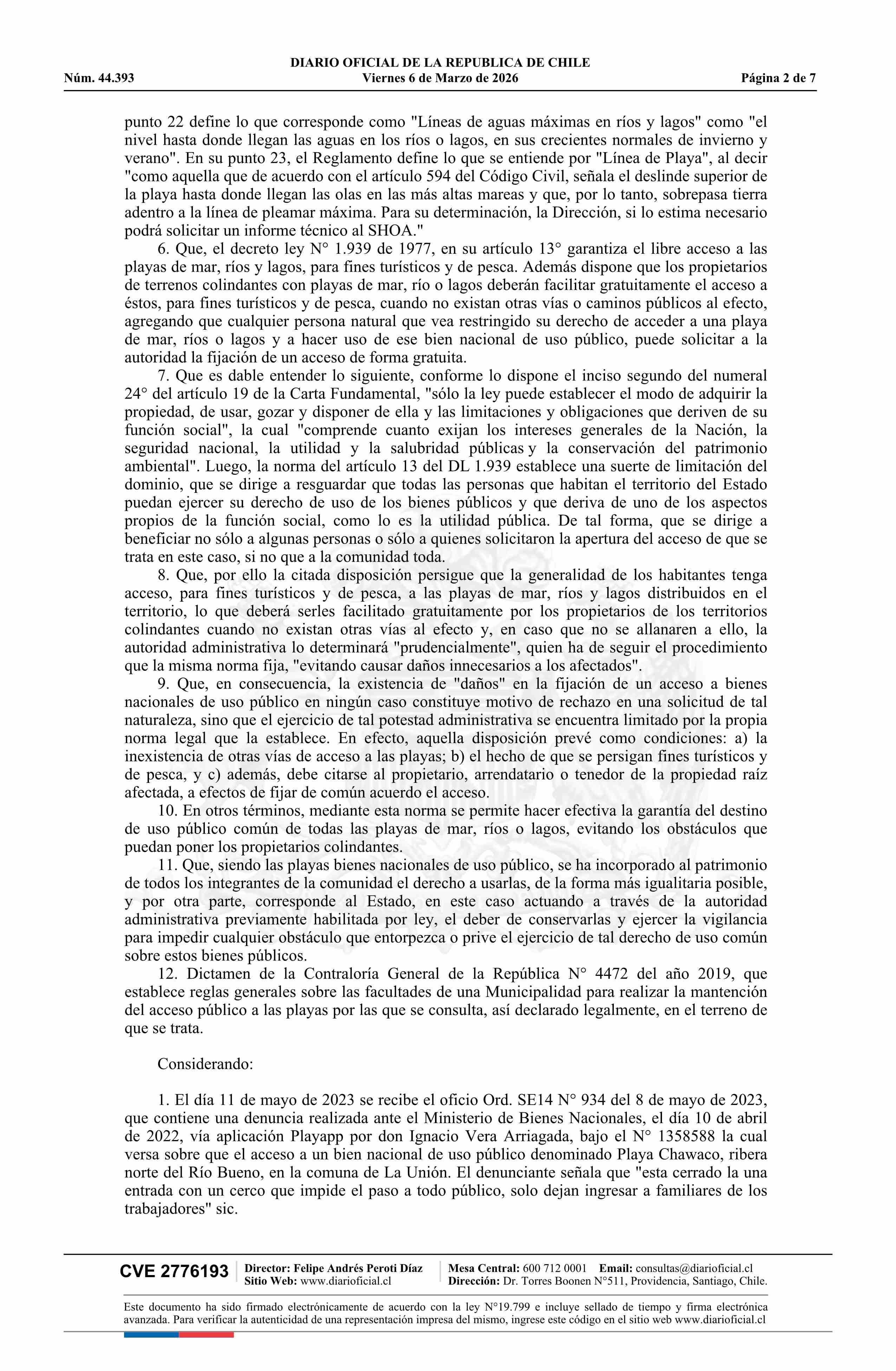 Resolución exenta número 554, de 2025.- Resuelve fijación de acceso peatonal a playa ribera Lago Ranco, sector Chawaco, en la comuna de La Unión 06-03-2026 Diario Oficial Edición Electrónica |