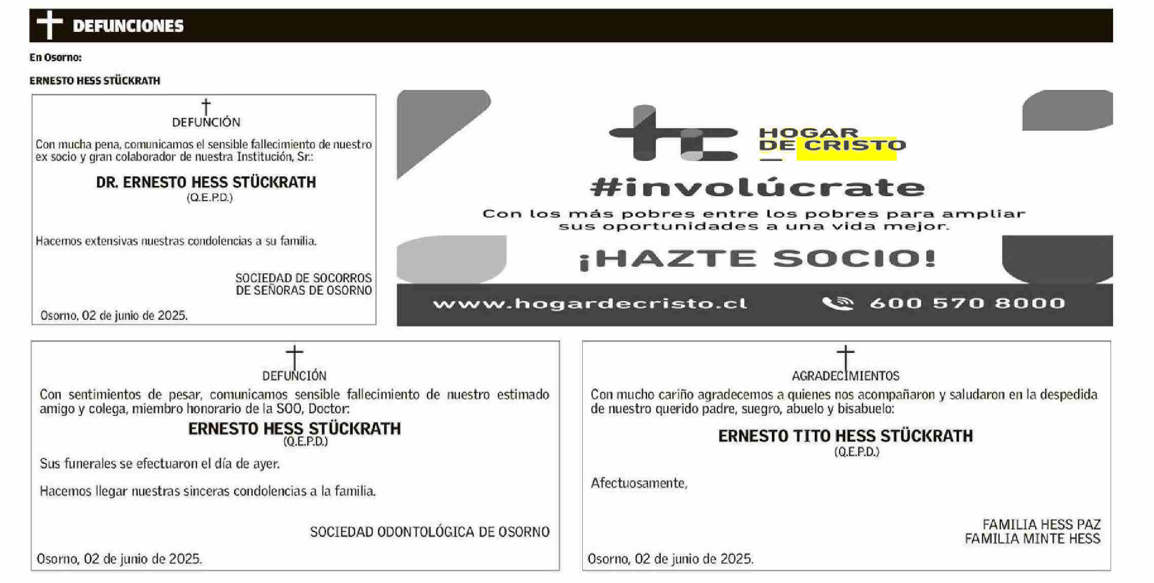 OBITUARIO: 02-06-2025 El Austral de Osorno |