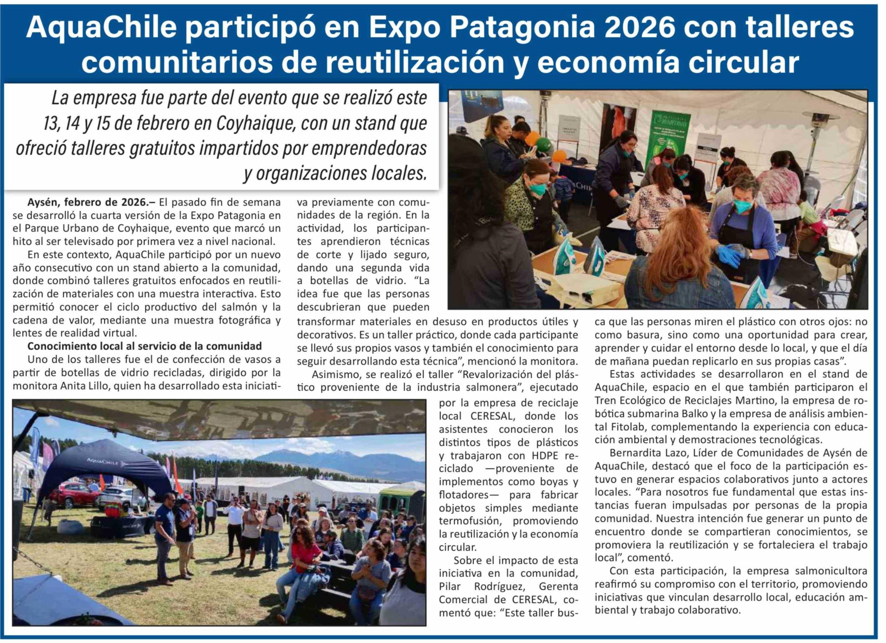 | Título: | AquaChile participó en Expo Patagonia 2026 con talleres comunitarios de reutilización y economía circular |