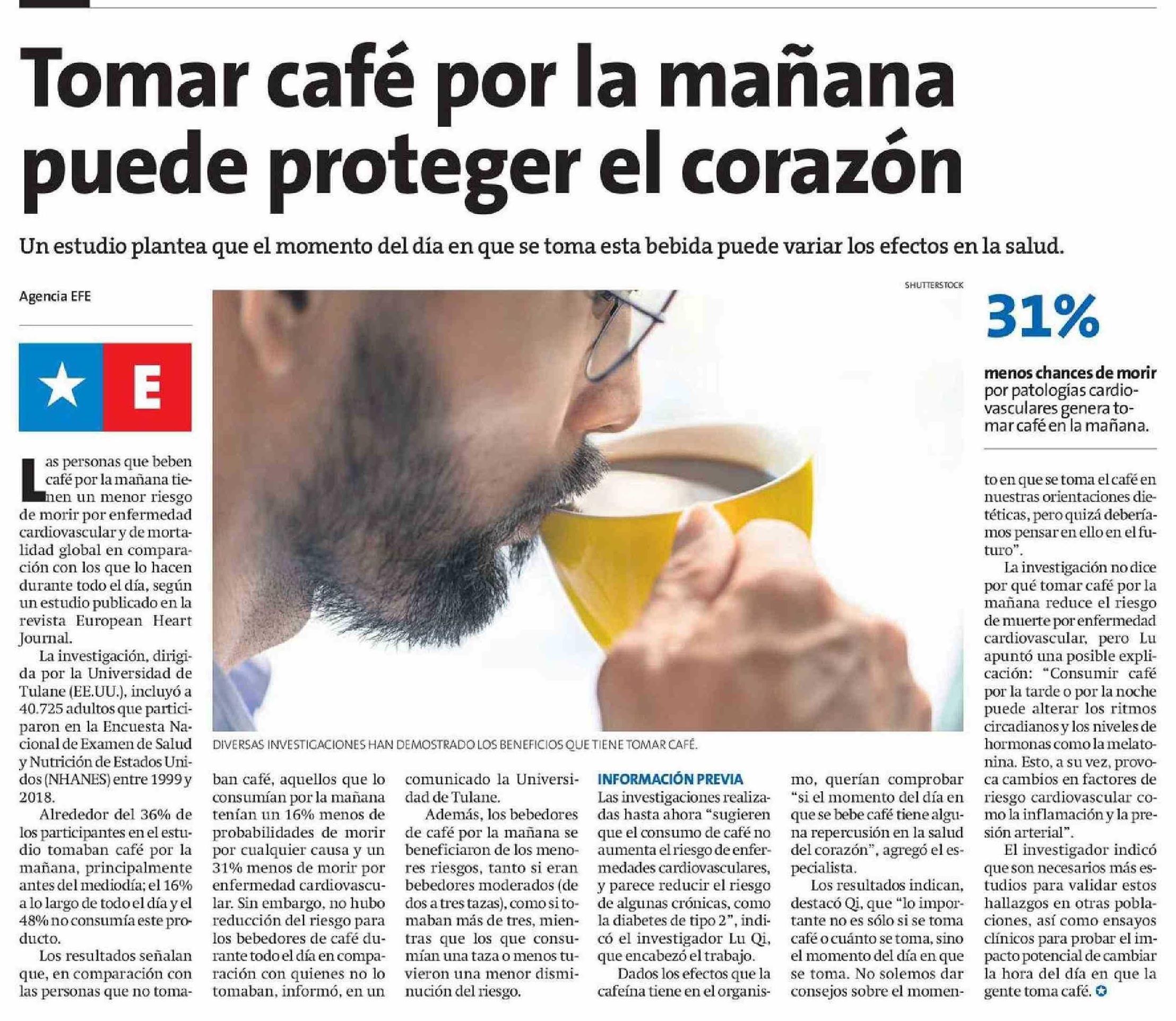 Tomar café por la mañana puede proteger el corazón 10-01-2025 La Estrella de Antofagasta |