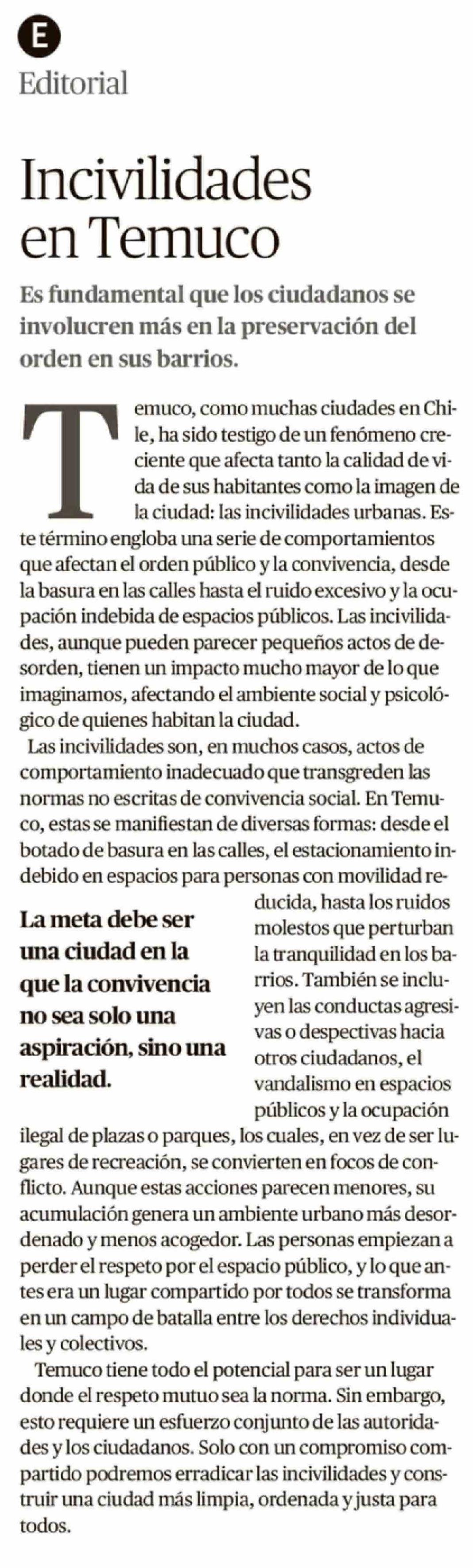Fecha: 19-03-2026 Sector: Editorial Región: Región de la Araucanía