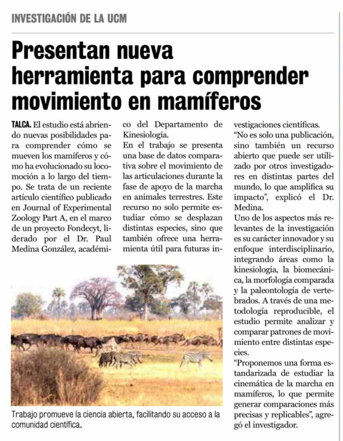 Presentan nueva herramienta para comprender movimiento en mamíferos 04-04-2026 La Prensa de Curicó |