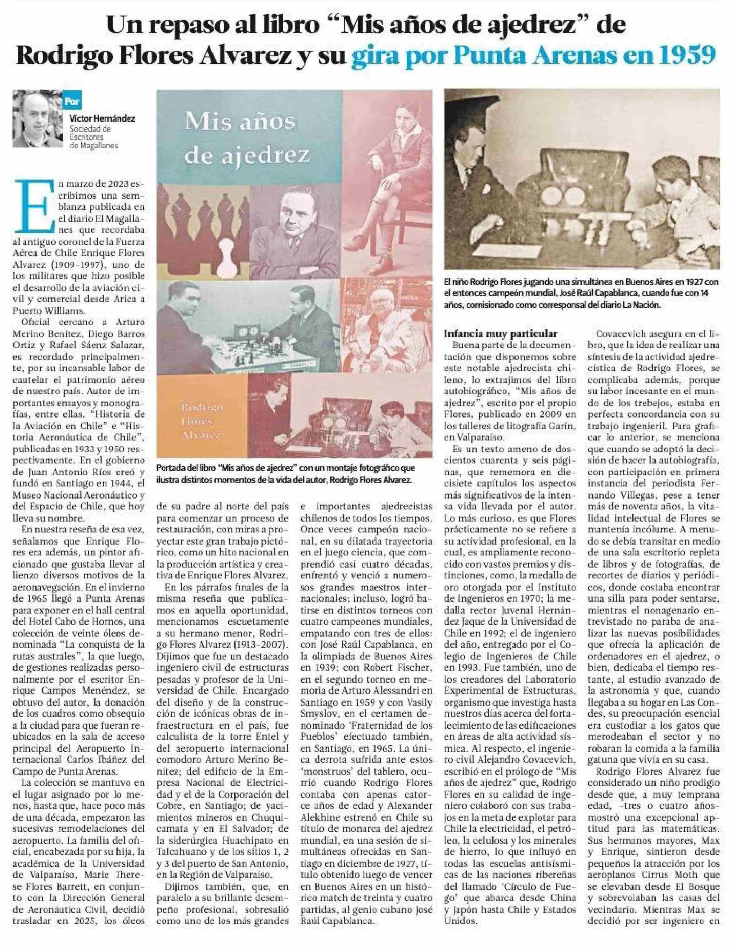 Título: Un repaso al libro "Mis años de ajedrez" de Rodrigo Flores Alvarez y su gira por Punta Arenas en 1959