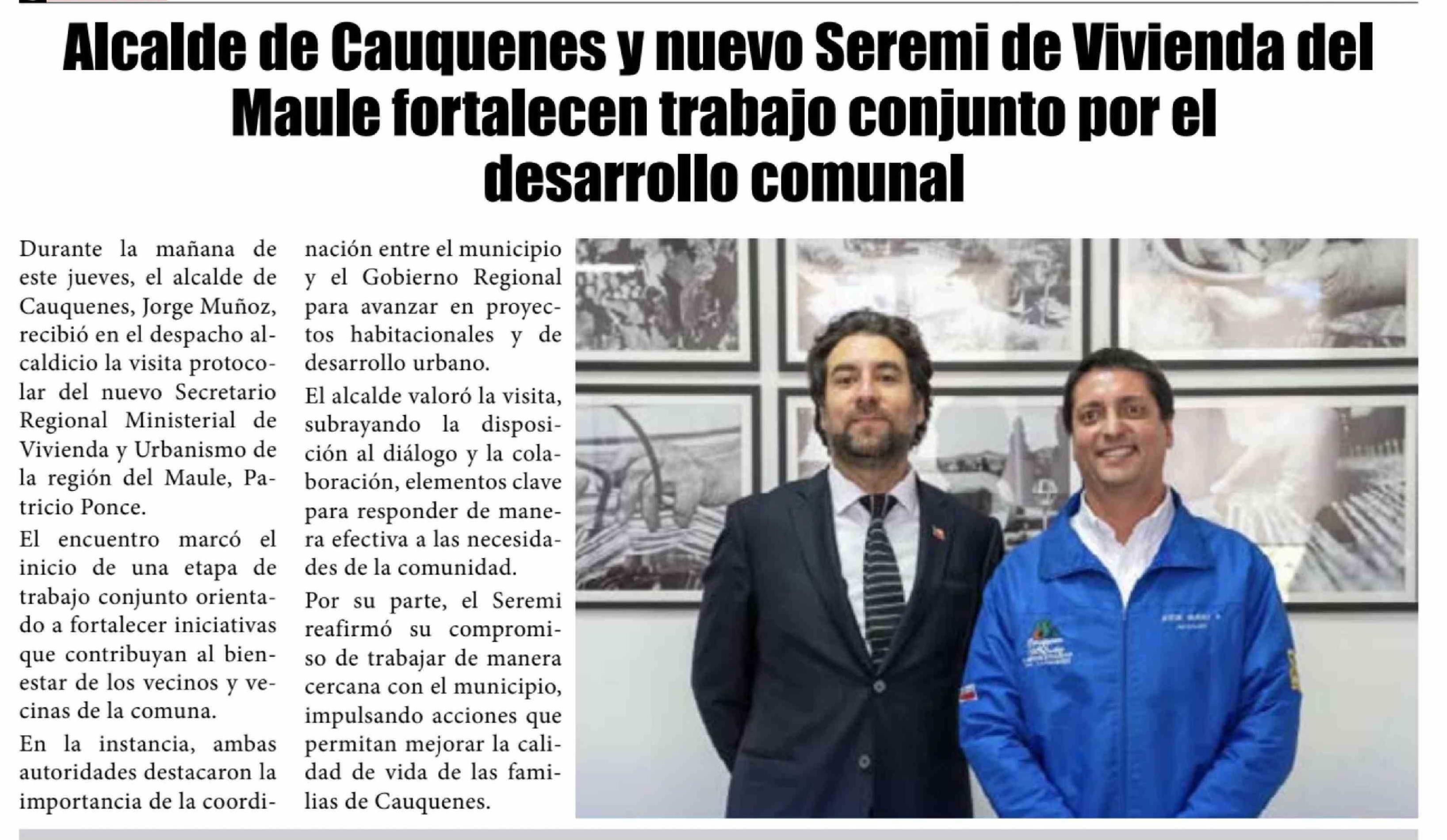 Título: Alcalde de Cauquenes y nuevo Seremi de Vivienda del Maule fortalecen trabajo conjunto por el desarrollo comunal