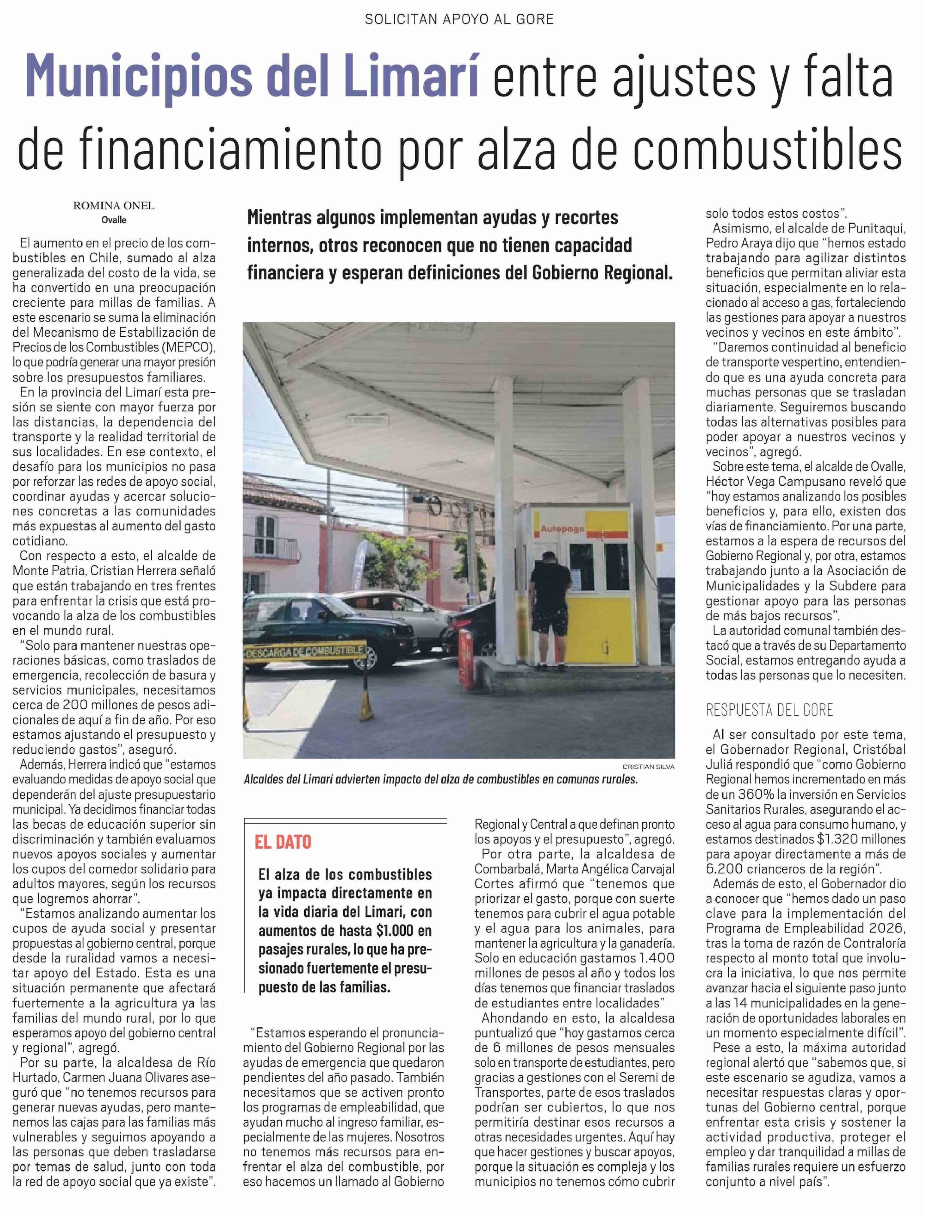 Municipios del Limarí entre ajustes y falta de financiamiento por alza de combustibles 06-04-2026 El Ovallino |
