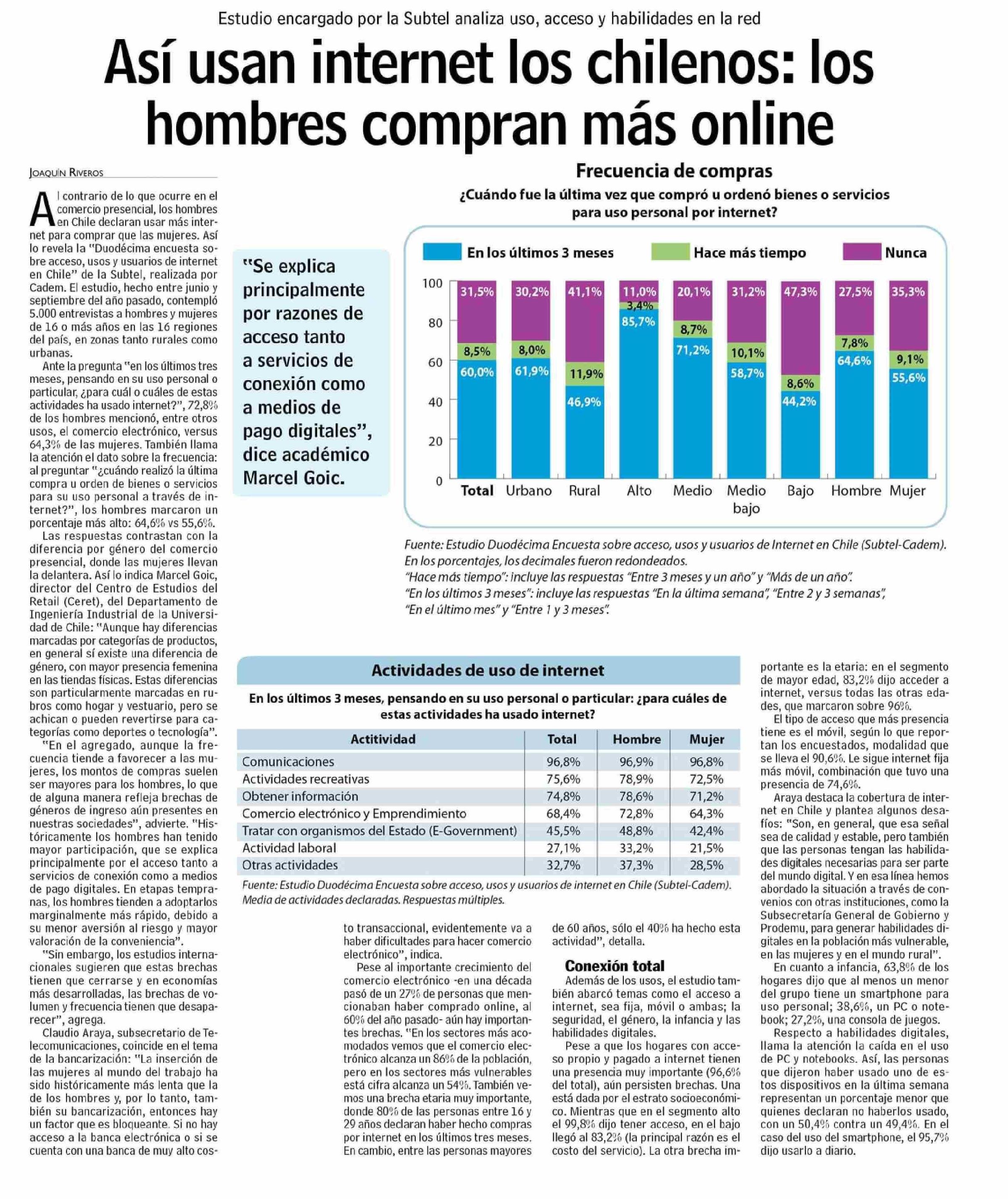 | Título: | Así usan internet los chilenos: los hombres compran más online |