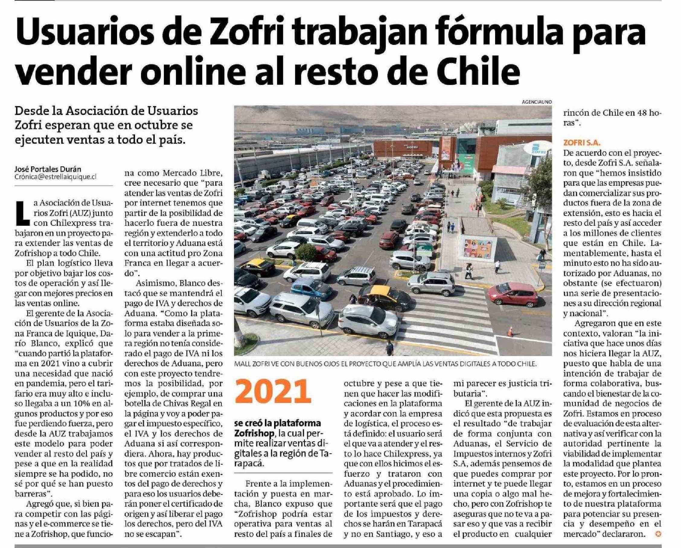 Usuarios de Zofri trabajan fórmula para vender online al resto de Chile 20-08-2023 La Estrella de Iquique |