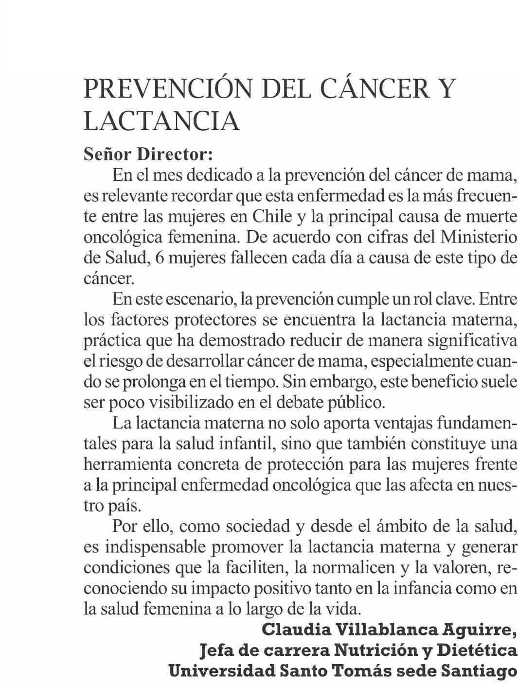 | Título: | CARTAS: PREVENCIÓN DEL CÁNCER Y LACTANCIA |
