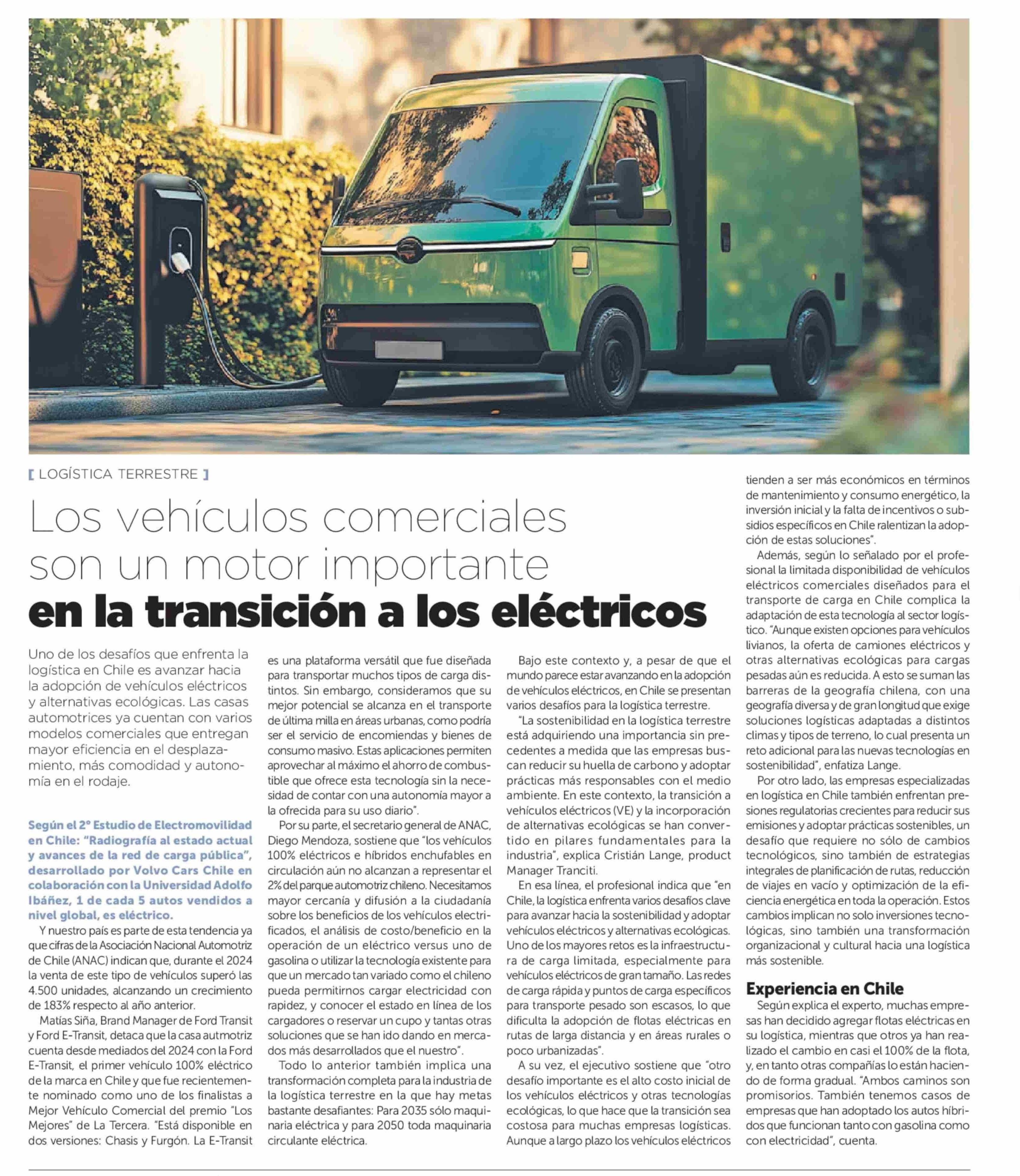 Los vehículos comerciales son un motor importante en la transición a los eléctricos 11-01-2025 La Tercera |