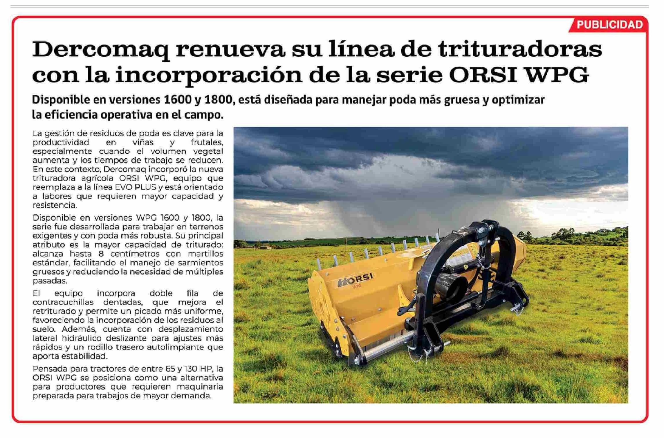 Título: Dercomaq renueva su línea de trituradoras con la incorporación de la serie ORSI WPG