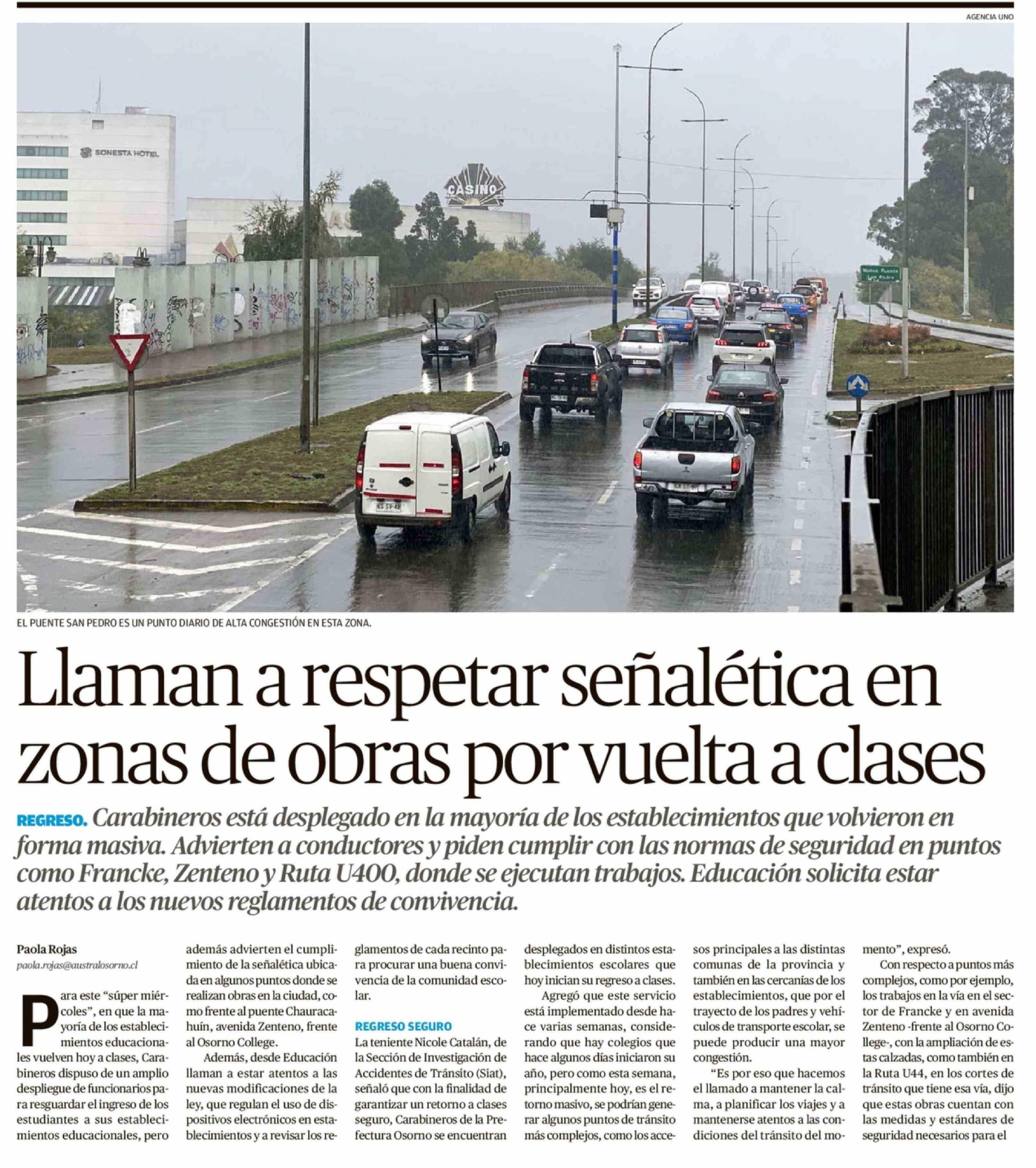 Título: Llaman a respetar señalética en zonas de obras por vuelta a clases