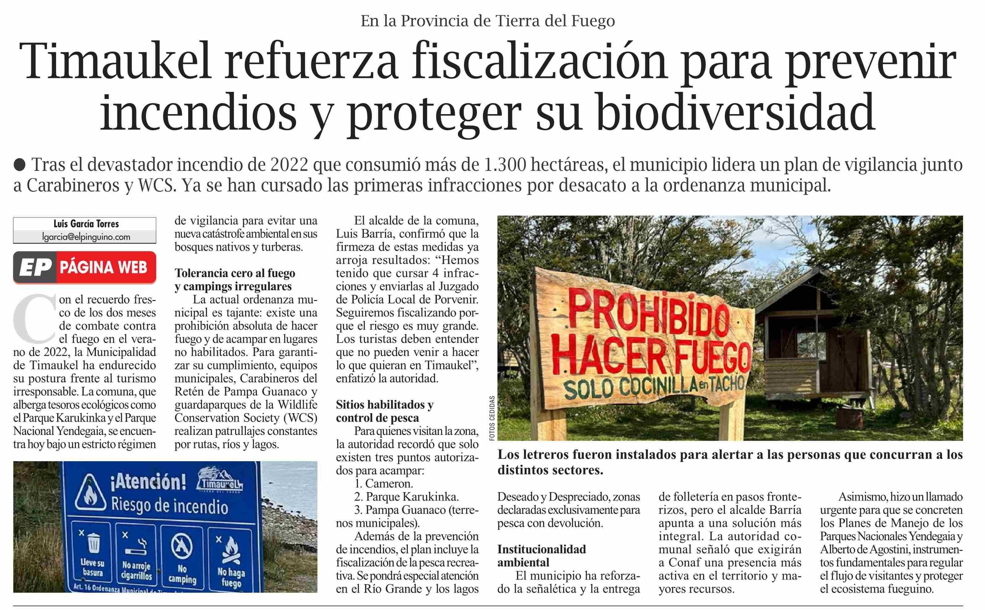 Timaukel refuerza fiscalización para prevenir incendios y proteger su biodiversidad 21-01-2026 El Pingüino |