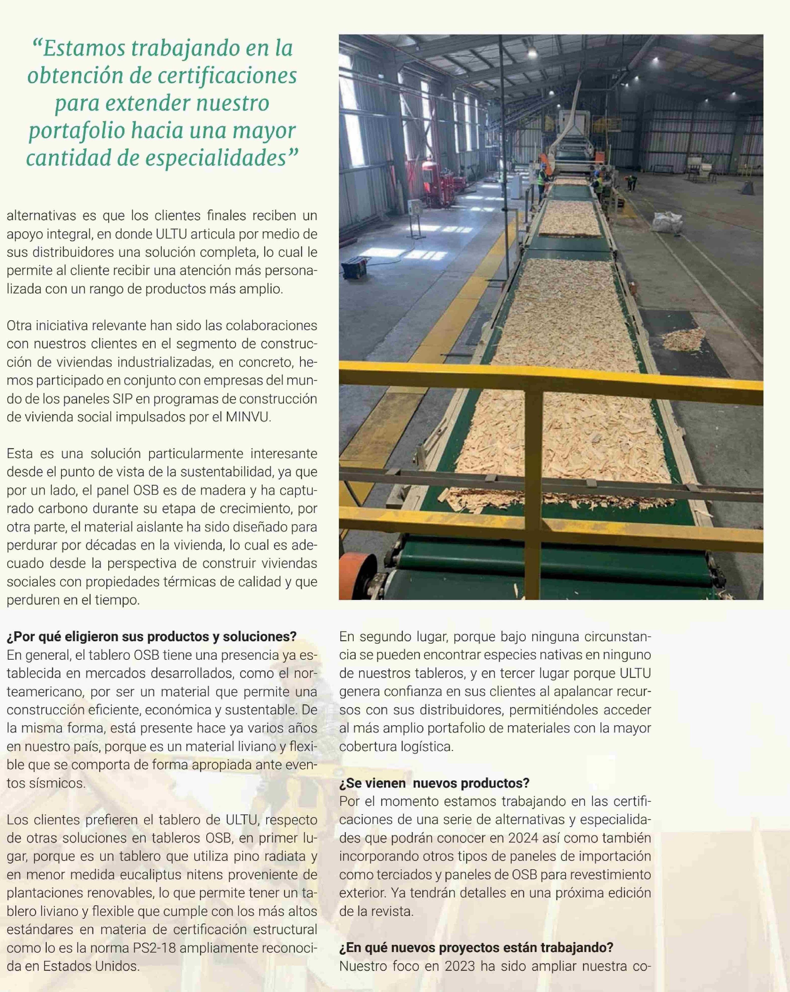 CALIDAD Y CUIDADO del medio ambiente, LA RECETA DE LOS TABLEROS OSB ULTU para triunfar 30-11-2023 Negocio&Construcción |