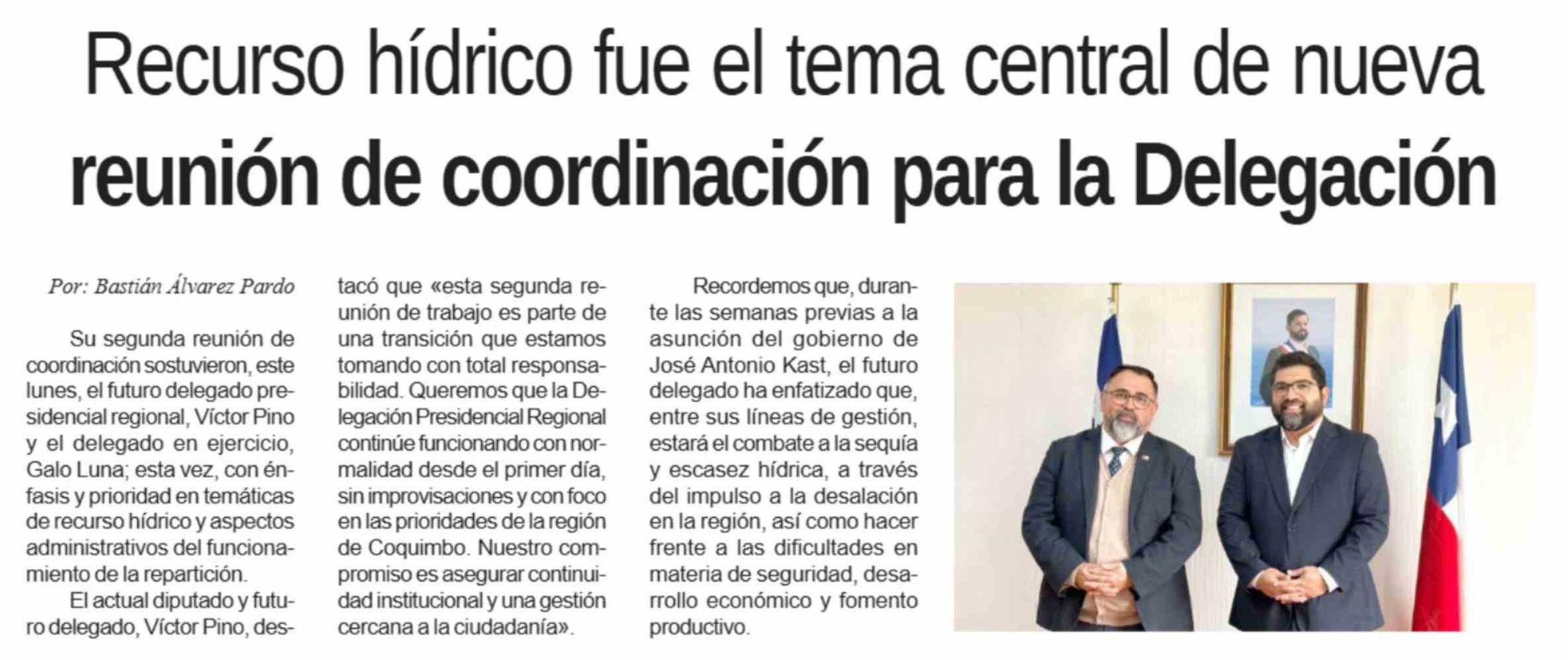 Recurso hídrico fue el tema central de nueva reunión de coordinación para la Delegación 05-03-2026 Diario la Región |